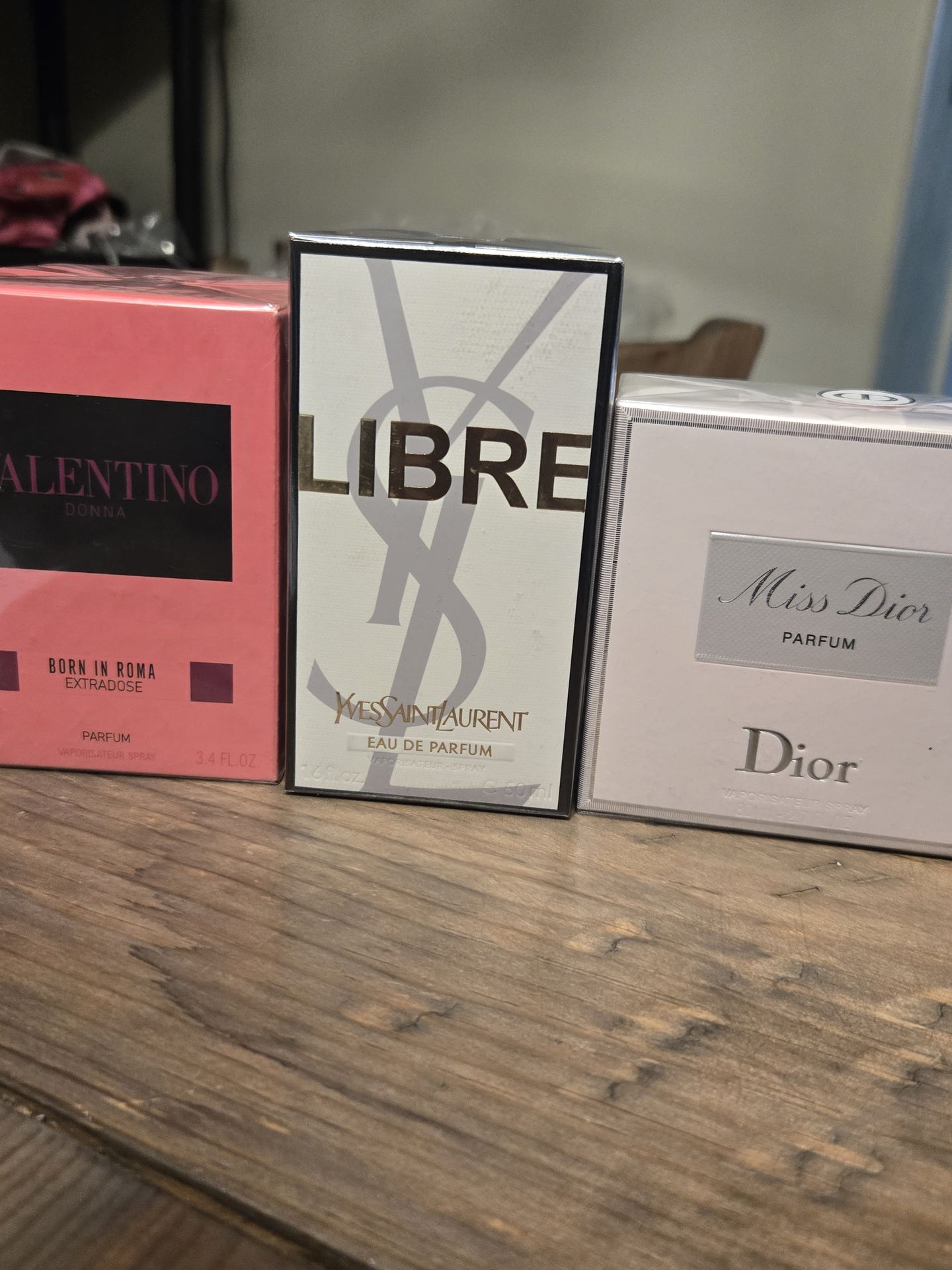 Valentino 3.4 oz $120 / Miss dior 2.7 oz $120 / libre YSL 1.6 oz $90