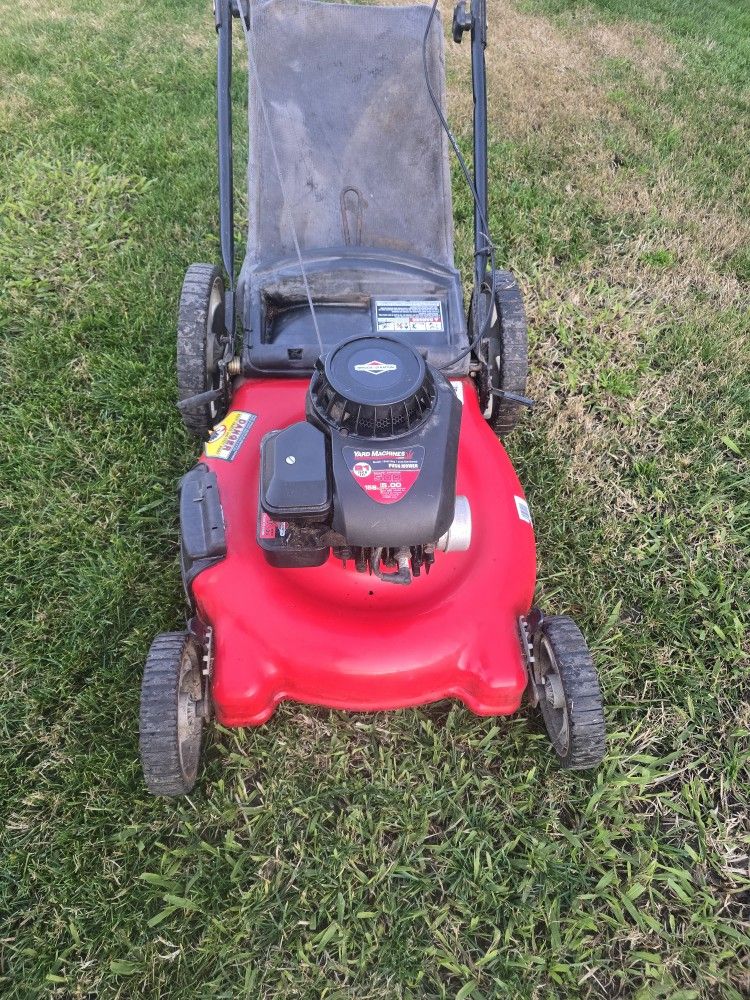 WE HAVE FOR SALE YARD MACHINES 5.00 HP PUSH LAWNMOWER. JUST PRIME AND PULL THE ROPE AND IT FIRES UP FROM THE FIRST PULL AND WORKS GREAT. JUST USED TODAY. NO ISSUES AT ALL