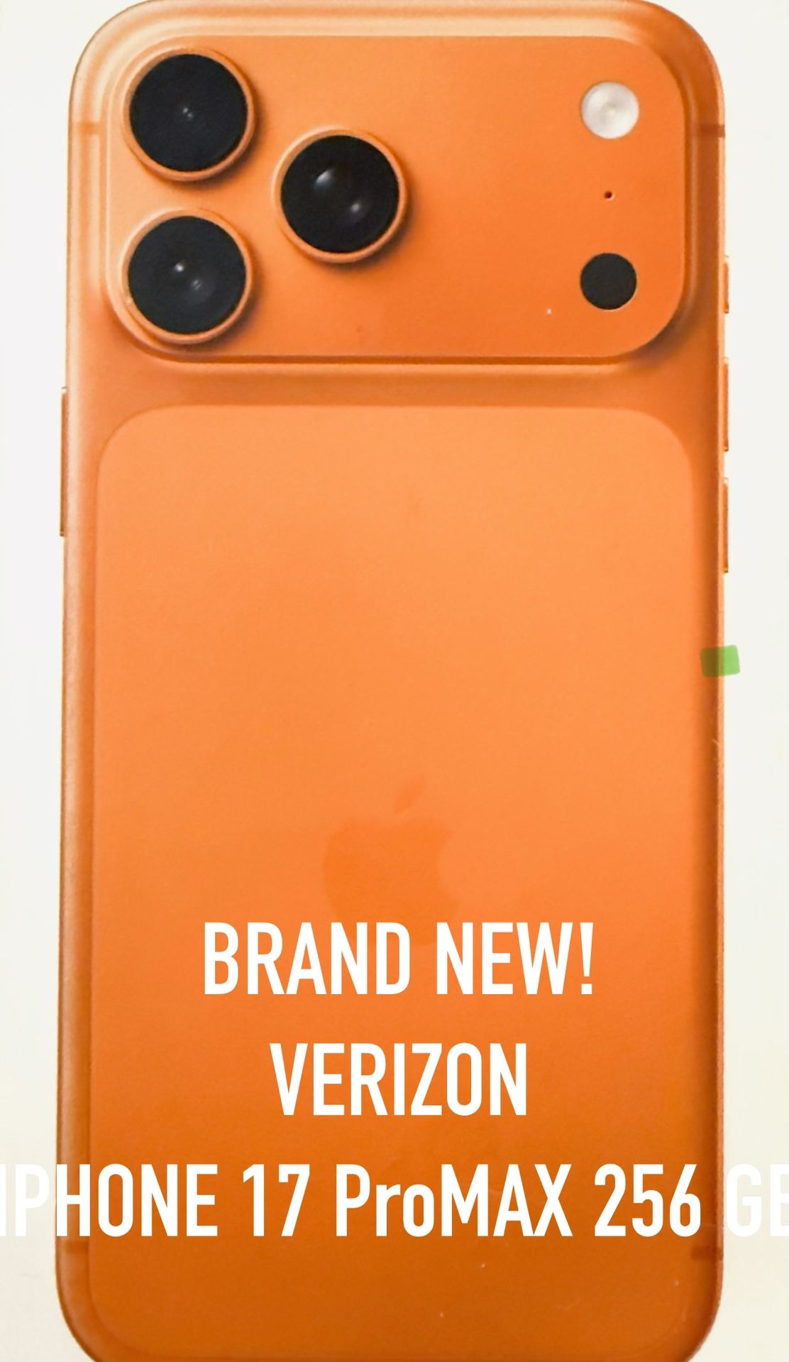 $1000 NO LESS! BRAND NEW Orange Verizon iPhone 17 ProMAX 256GB Retail Value is $1299.99 +Tax which is what I paid so I will not entertain any offers other than the $1000 I posted because I already discounted for less than what I paid. NO TRADES! I purchased this brand new outright and the reason it’s still brand new and for sale is because I purchased the silver iPhone 17 Pro Max and I still have this phone because I wasn’t allowed to return it outside of my 14 day timeframe so I’m stuck with it hence why it’s still new and unopened ; this is why I am asking for $1000 which is reasonable price. First person available to buy this phone right now gets it. I’m able to meet or drive within reasonable distance from North Phoenix/Paradise Valley. only serious inquiries.