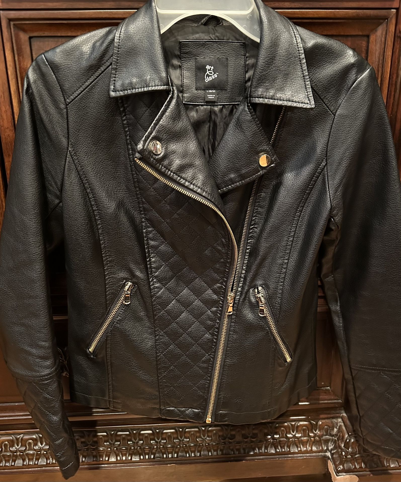 Excellent Art Class Girls' Full-Zip Quilted Black Faux Leather Jacket Coat Size L(10/12)