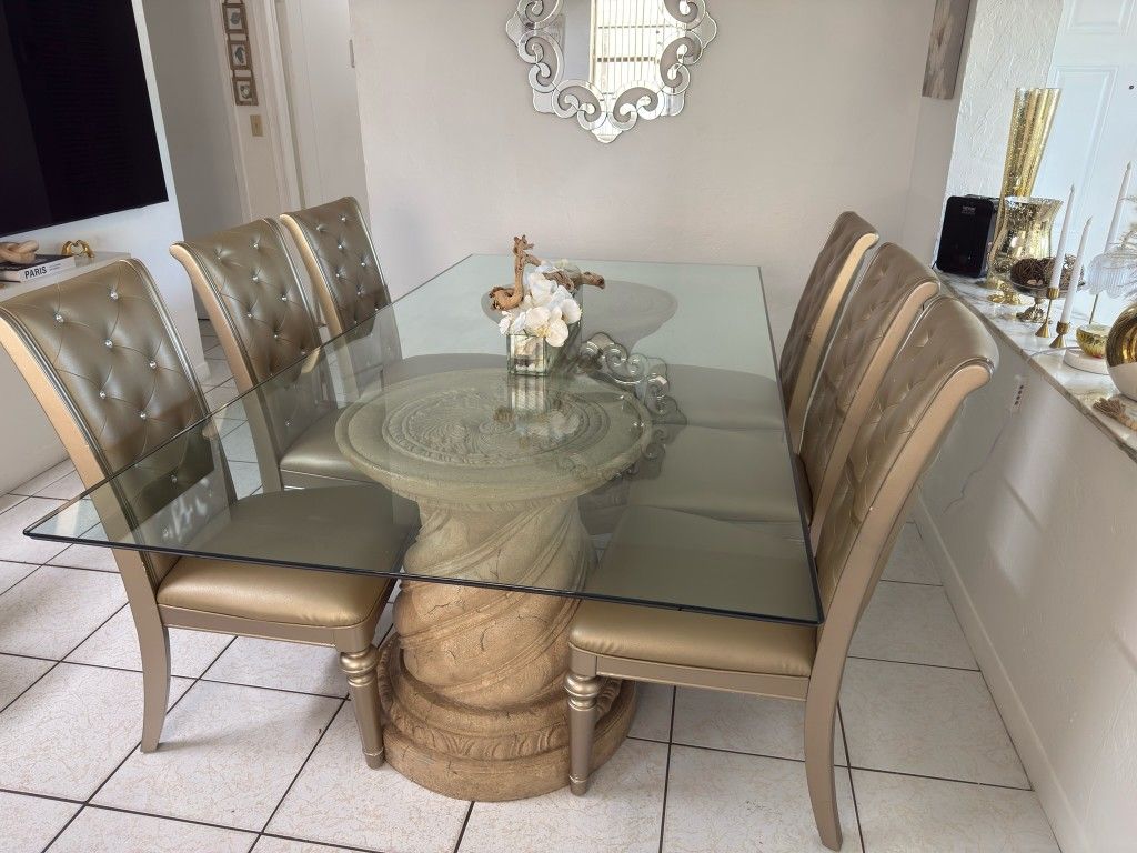 This is an elegant modern style dining table to have all your family life experiences and loved ones to gather together for many years to come. It is built sturdy and with the highest quality in the market. I am selling it cheap to make space for an office at my house. It must go. My loss is your gain. Must come with a helper and a truck ready to pick it up. It is heavy.