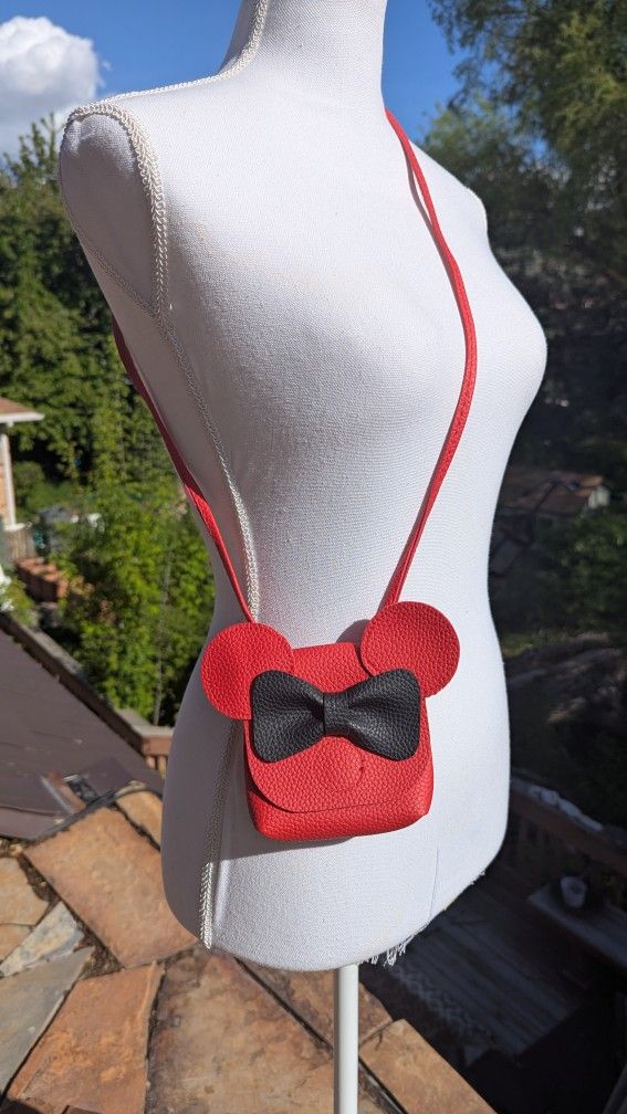 Leather Mini Mouse crossbody satchel In good condition. There are a few marks inside the bottom of the bag, otherwise in perfect condition. The closure is magnetic. Great for a small item that is taken out often, like a camera, or for kids to carry their own little treasures in. Smoke free home. Crossposted on other platforms. I am cleaning out my family's houses so we can help my mom retire and move, so there is quite a bit for sale. Please check out my other listings and feel free to make offers as well!