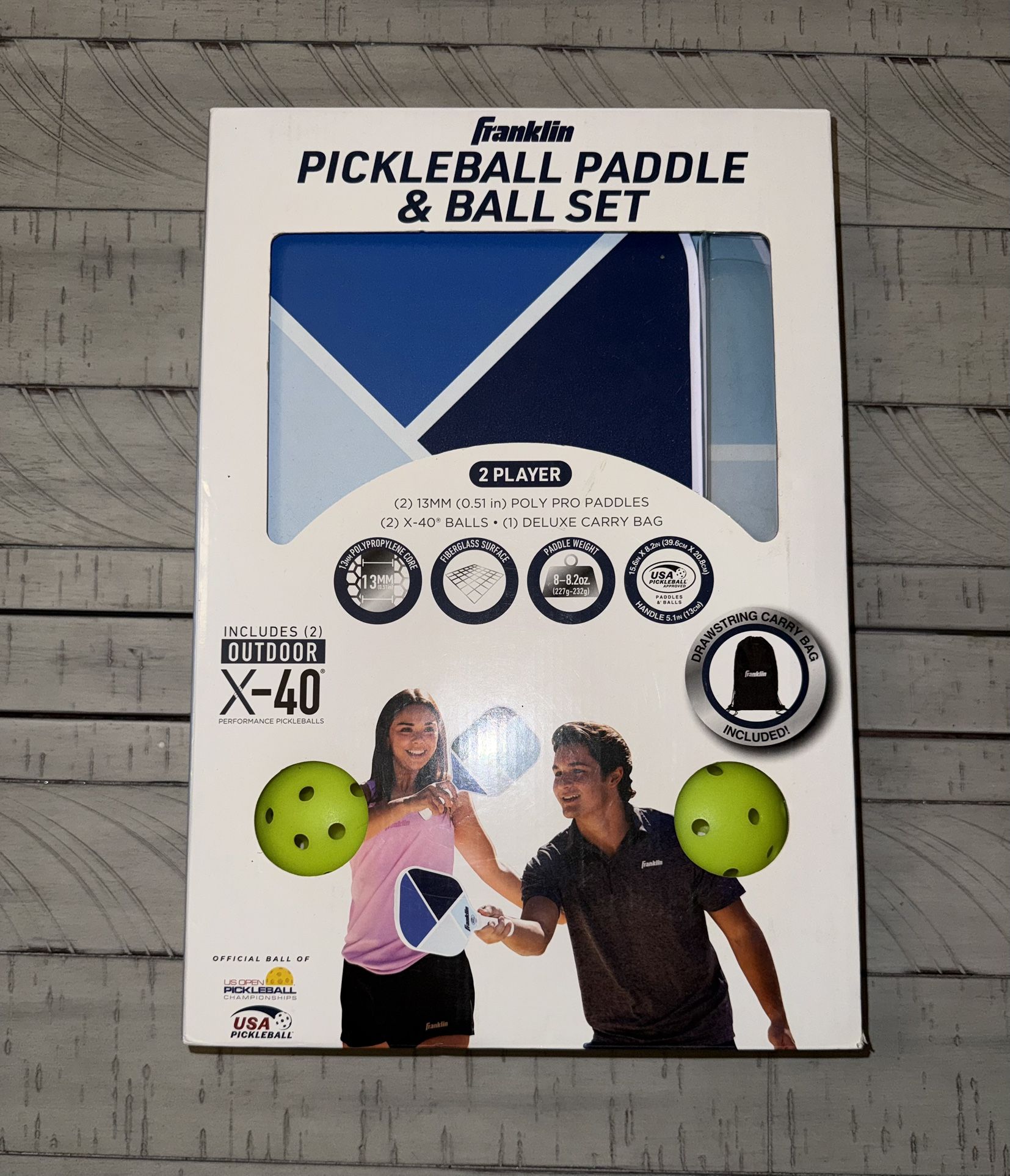 Franklin Sports 2-Player Pickleball Paddle Set - (2) Fiberglass Paddles+ (2) X-40 Pickleballs - Blue