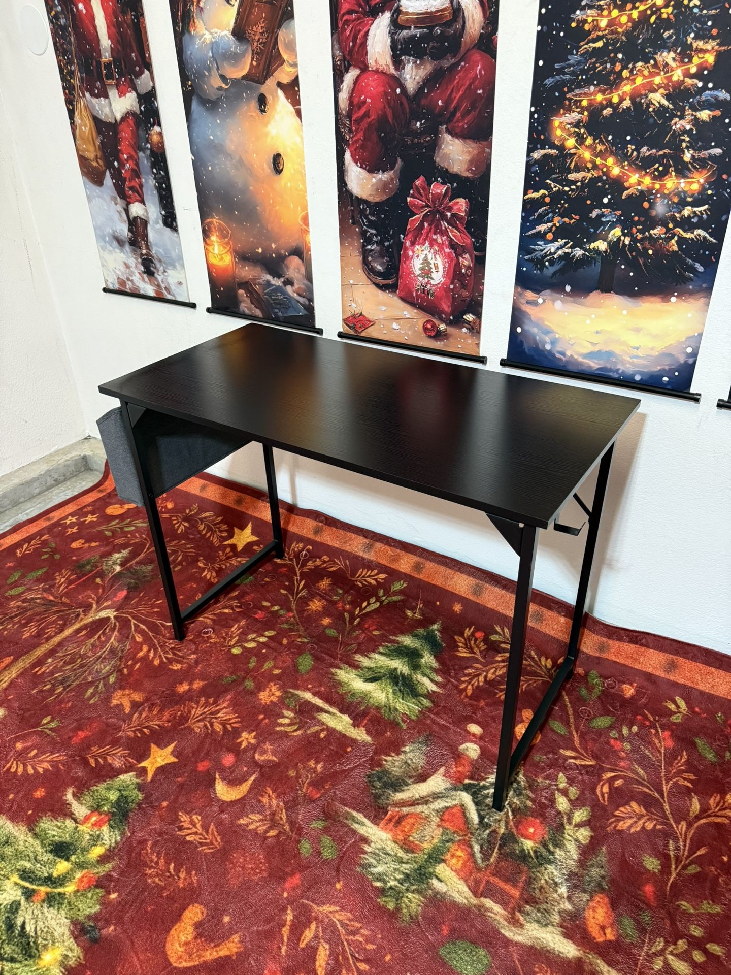 Office Desk Open box never used Wood Top & Metal Frame Storage & hanger on the sides 40in x 20in x 29.5in Height Black