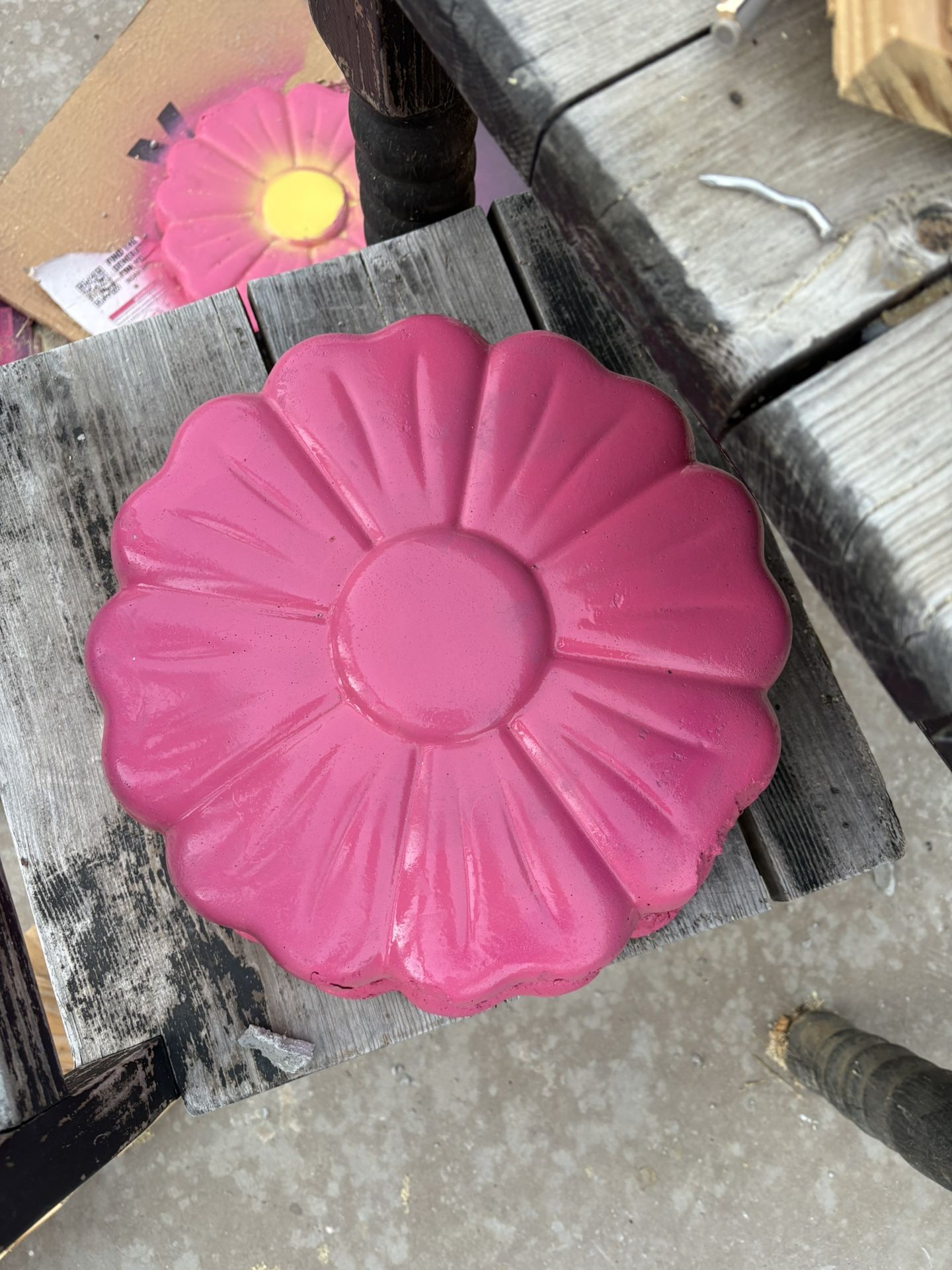 Pink Flower Concrete Tile Dimensions- 12inx12in 7 dollars Great for outdoor decoration on garden Flor Color Rosa Tira de Concreto Dimensiones- 12 pulgadas x 12 pulgadas 7 dolares Para decoraciones exteriores en tu jardin