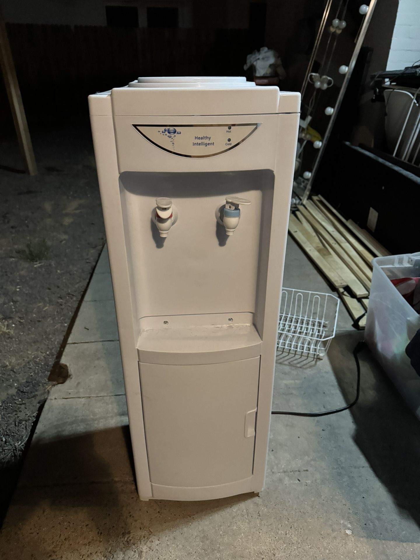 5 gallon water dispenser, works great. Barely used. Water Cooler Dispenser for 5 Gallon Bottle, Hot&Cold Top Loading Water Dispenser, Freeding Standing Cooler with Child Safety Lock Removable Drip Tray & Storage Cabinet for Indoor Home,Office (White)