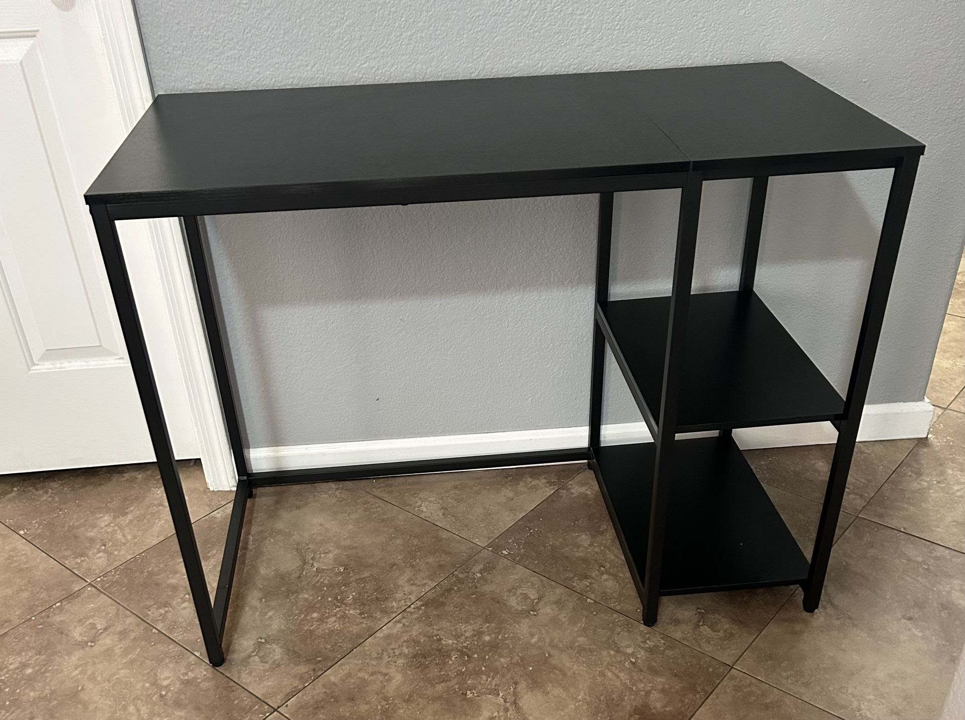 This is a brand new Sinpaid writing desk in black. This study desk has 2 tier shelves. Measures 20”D x 40”W x 30”H $40