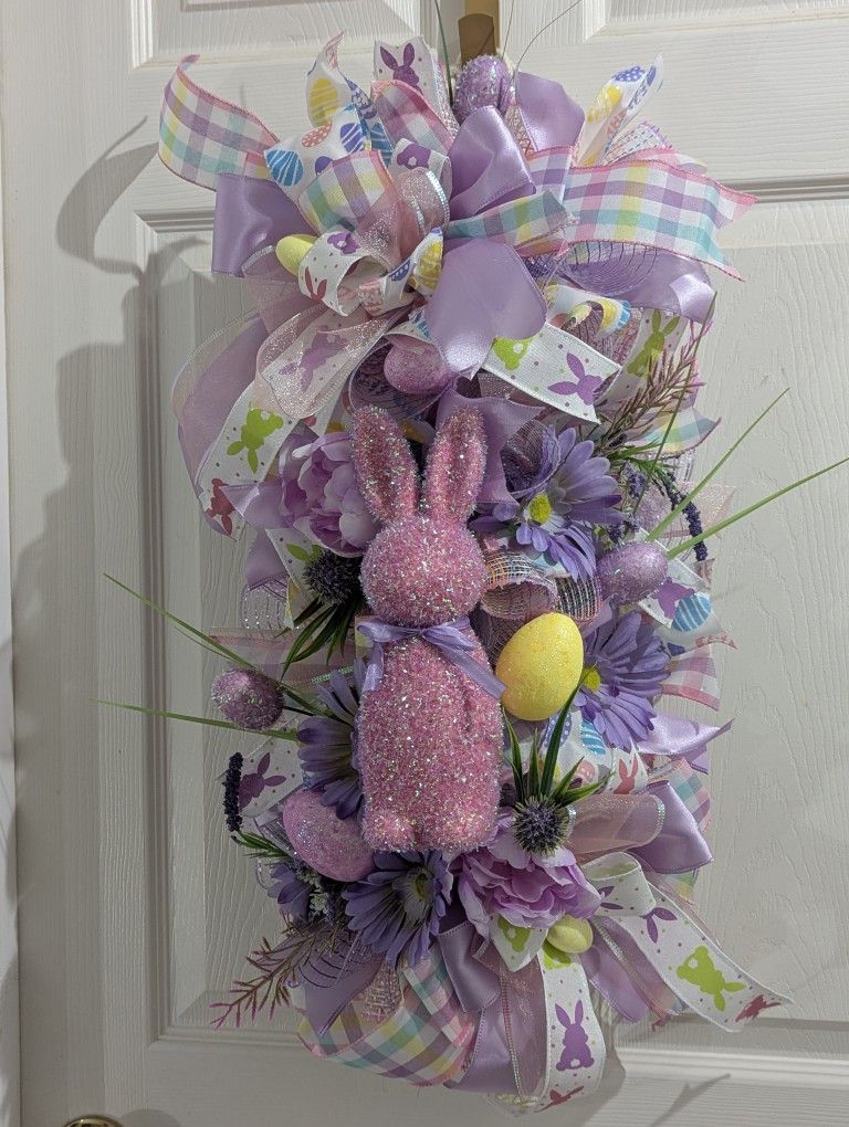 Door swag/wreath with purple easter bunny and assorted decorations. New, handmade. Pick up in Hendersonville. Cash, Venmo or Cash App.