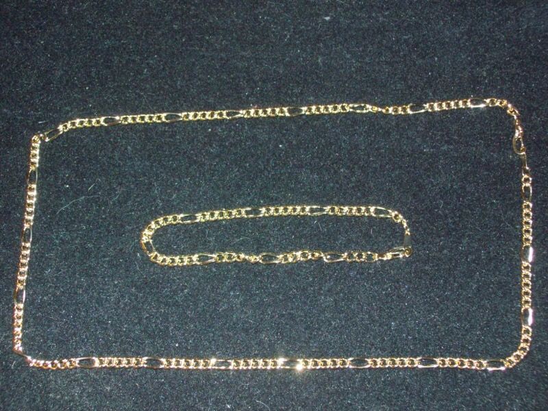 14 gold plated. Set $25 or can be purchased separately. Necklace $15 or bracelet $10.