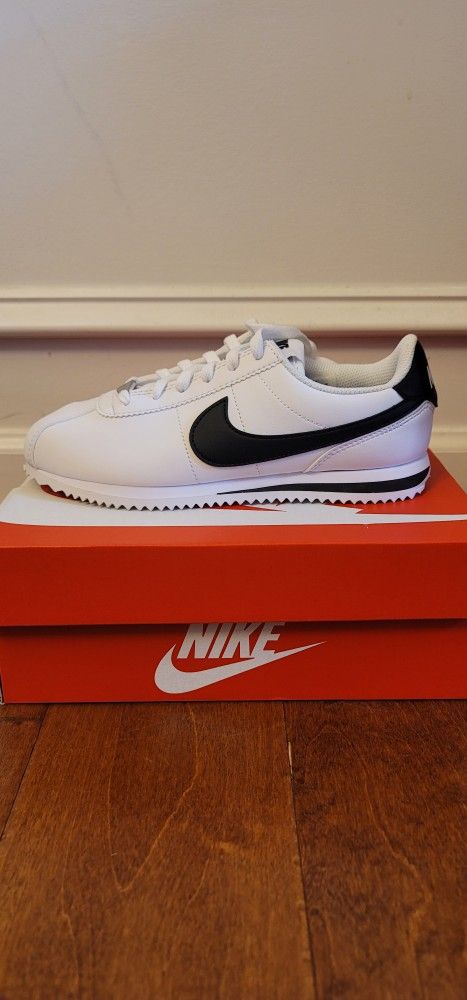 The Nike Cortez Basic SL GS Shoes in Youth Size 3.5 are a stylish and comfortable pair of sneakers for young athletes. Featuring a classic low top design with a lace-up closure, these shoes are perfect for running and jogging. The white and black color scheme adds a sporty touch, while the synthetic upper material and foam insole provide durability and cushioning. With a flat heel and rubber outsole, these Nike kids Cortez shoes offer both style and performance, making them a great choice for any active child.