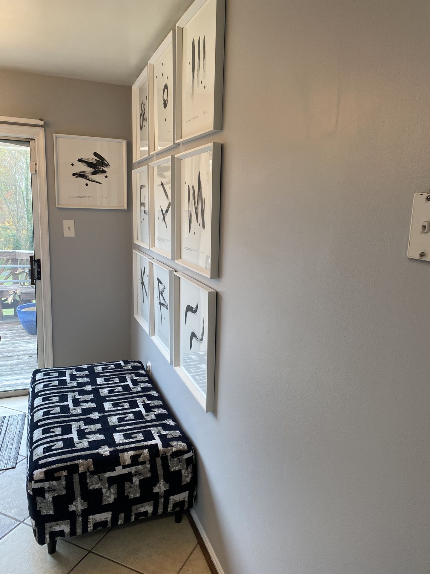 Black white gray ottoman used it as a coffee table or a bench at the foot of the bed