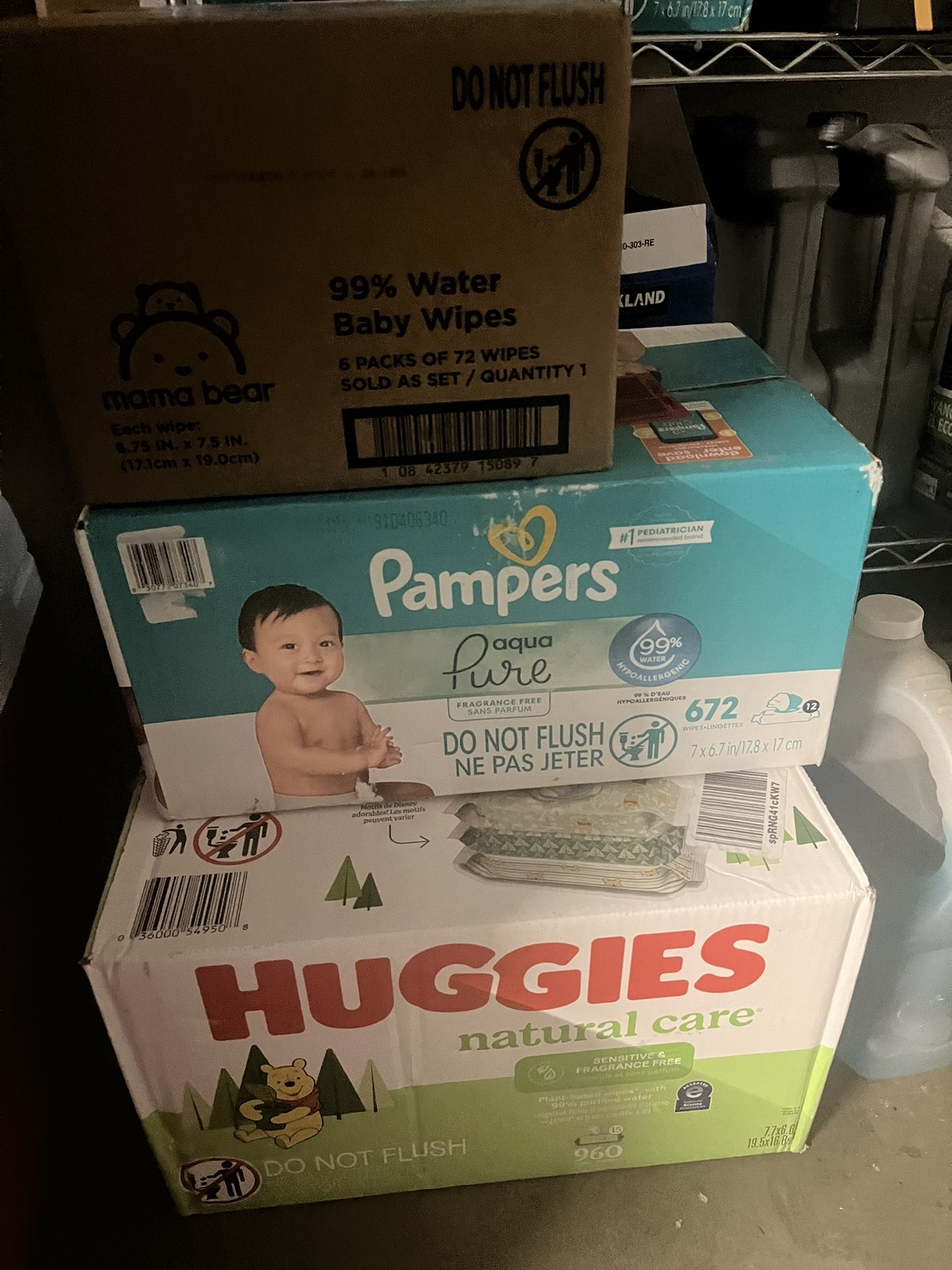 New $30 each box Pampers aqua pure 672 ct Huggies wipes 970 ct