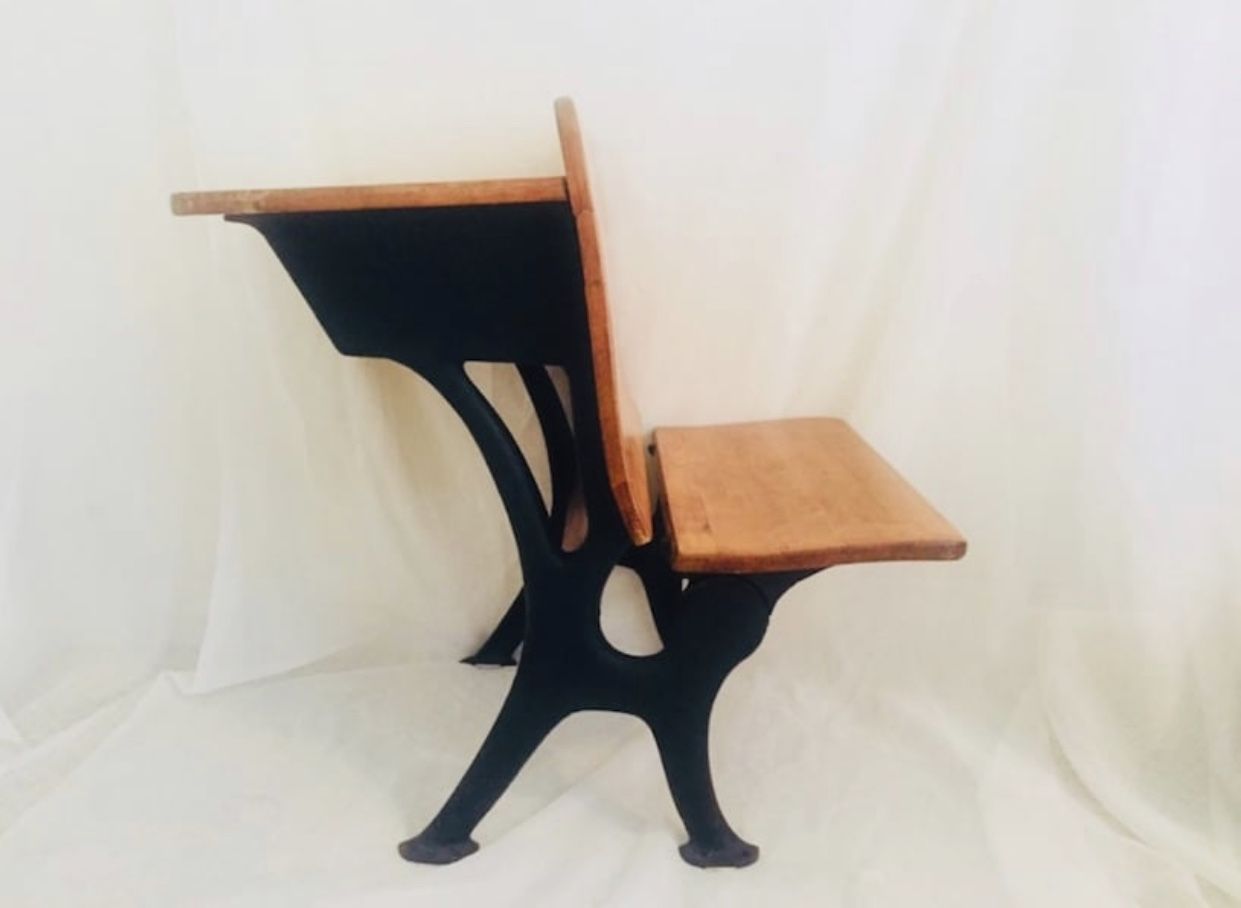 Awesome piece! Early 1900 A.H. Andrews co. Chicago childs school desk. Cast iron and solid wood.