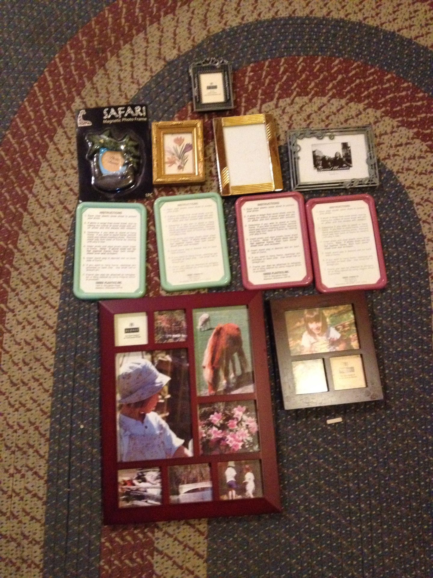Picture frames made of different materials - wood, plastic and glass. Sold as one unit. Reduced from $15. To $10.