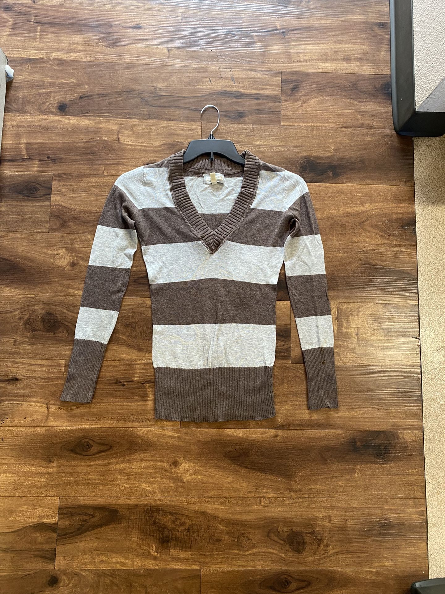 Brand New Woman’s Aeropostale brand Brown and Gray V-Neck Sweater Up For Sale Size woman’s XSmall In brand new condition Looking to sell for cash only Can only meet in Tacoma If you have any questions or offers, please feel free to ask