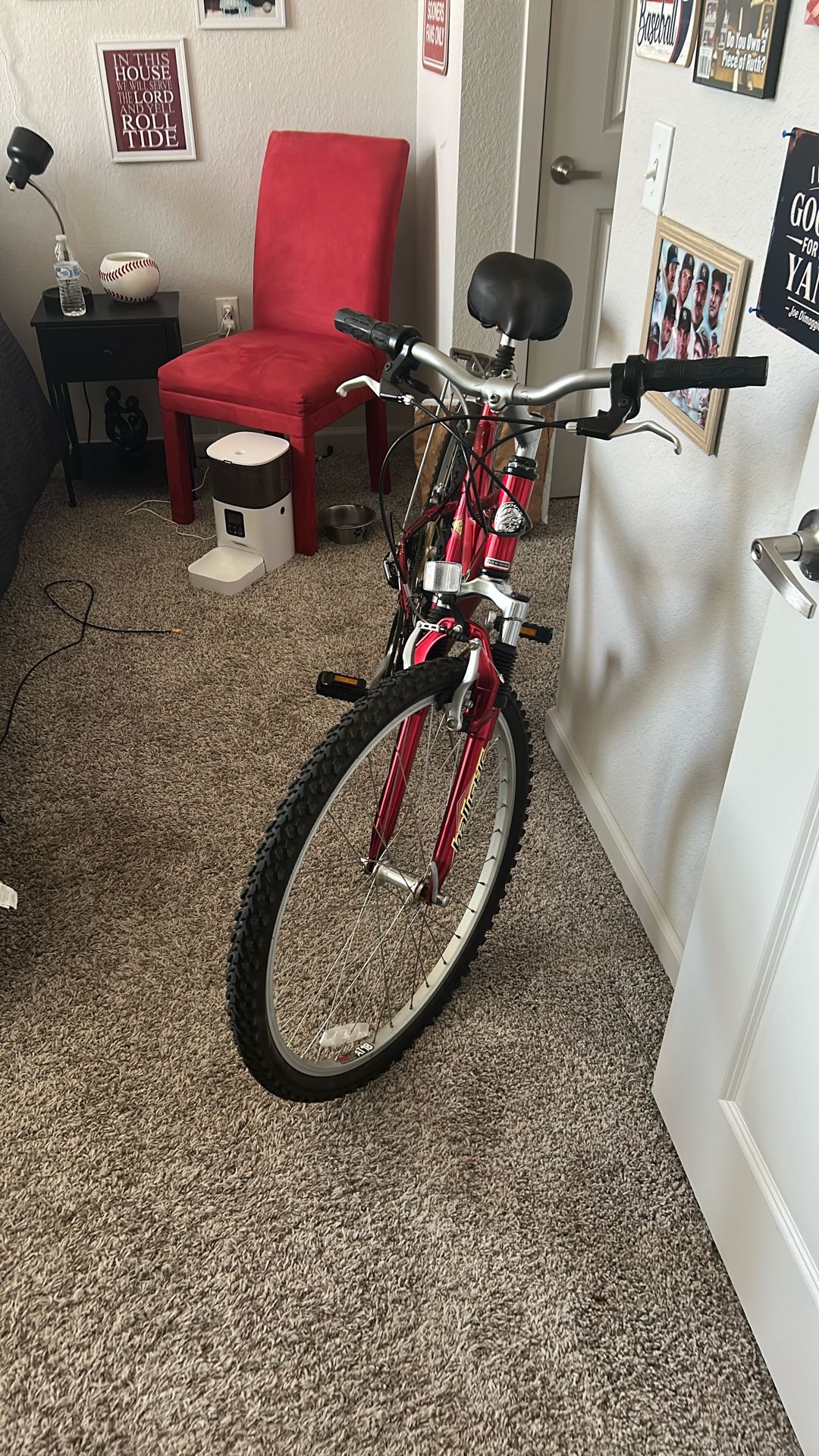 Used, rides good, needs new tire on back wheel, but I ride it now.