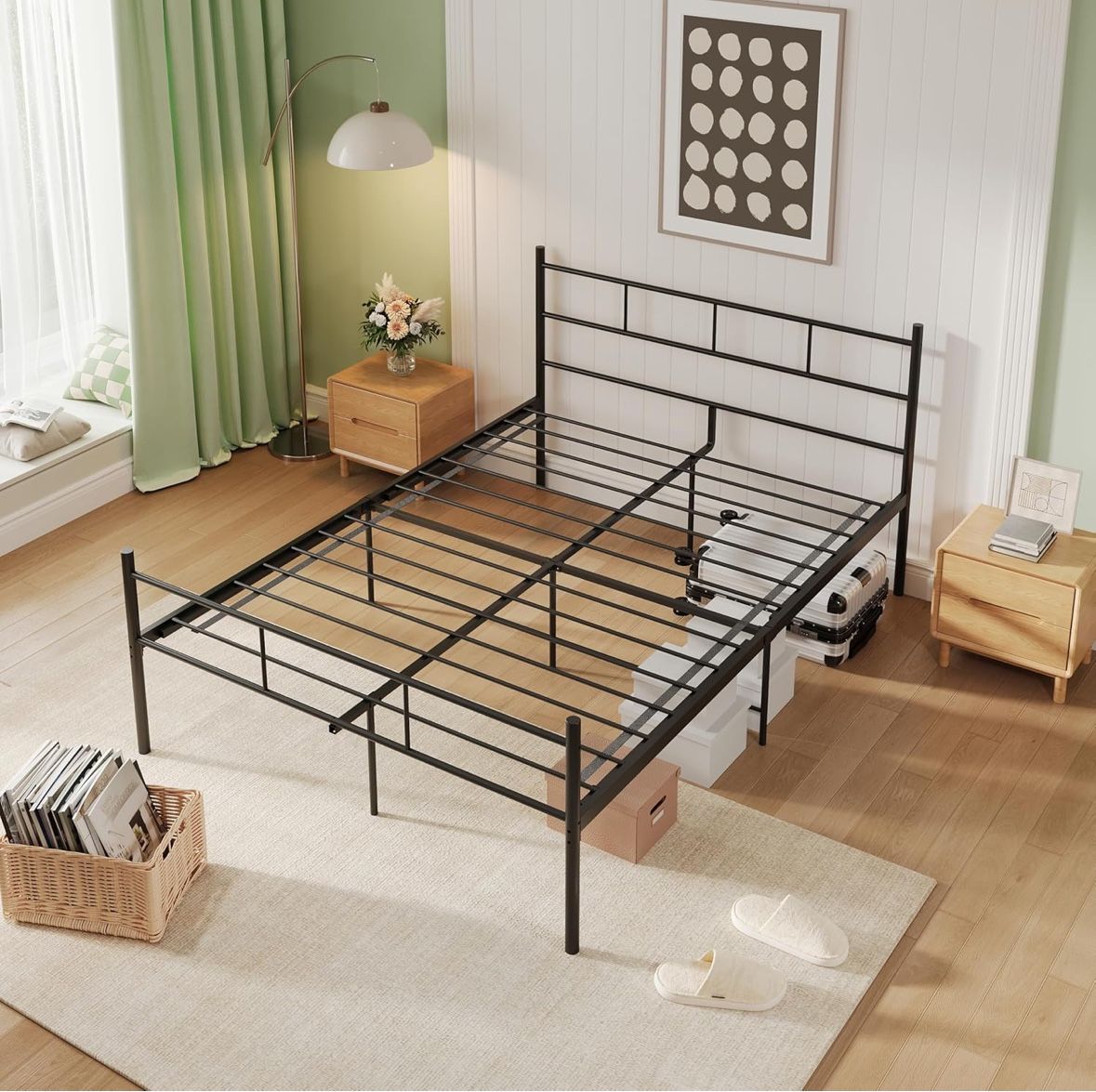 Selling this New still sits in packaging 14 Inch Queen Size Bed Frame with Headboard Heavy Duty Metal Platform Bed Frame Mattress Foundation Underbed Storage No Box Spring Needed Noise Free Foldable Bed Frame Black Sturdy Steel. Asking $120 only! New! Easy assembly】The bed side frame adopts a unique folding design, while the keel part is strung together with nylon straps, simplifying the installation step and reducing the use of screws. Make installation more efficient and save time and effort. ❤【Underbed Storage】 With 13 Inches high storage space for luggage, out-of-season clothes, shoes and https://offerup.com/redirect/?o=bW9yZS5Ubw== keep your bedroom clean and organized, it's a good idea to choose this platform bed frame with plenty of storage space under the bed ❤Designed for sleepers up to 900 pounds,this frame sizes support maximum weight capacity of 2200 lbs. ❤【Modern style】Featuring clean lines and metallic texture, this full size bed frame creates simple yet stylish tones that blend perfectly with industrial, rustic and farmhouse style homes and never go out of style. ❤【Sturdy&Noise Free】Our heavy duty bed frame has 14 metal slats and 6 sturdy legs to achieve high load capacity and stability, giving you a safe and stable sleep without the need for a box spring. The accompanying 3M glue mute sticker ensures a quiet sleeping environment.
