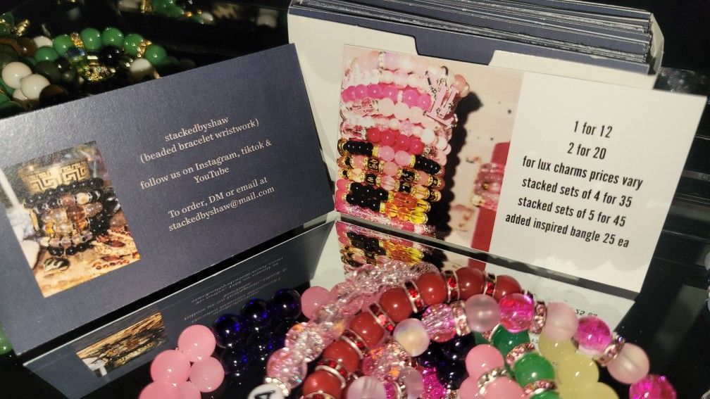 1 for $12 and 2 for $20. 4 for $35 and 5for $45. Beaded bracelets with luxury inspired charms add $3 extra each. To add insprired lux bangle additionally $25 each.