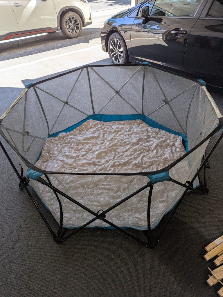 Regalo My Play Deluxe Extra Large Portable Play Yard Indoor and Outdoor Baby Gates - Aqua Blue with playmat included. 8 panel