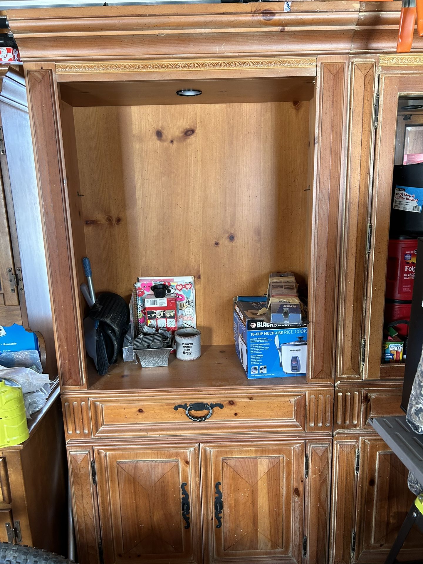 FIRST OFF EXCUSE THE MESS WE ARE MOVING AND THINGS ARE EVERYWHERE!I have two Thomasville cabinets that I bought for a small project to keep for myself and never got around to them. The first one pictured needs nothing. They are solid and sell for around $900-$2500 in the way they sit now. Neither needs anything major at all. They have glass shelving, which I have all of them and they have lights. The second cabinet needs the glass in the left side of the door and a couple knobs. All the glass and the mirror is in perfect shape. I just bought a new home and am moving and decluttering so things like this have to go that’s why I’m selling so cheap. This is cash only no cash apps. Will meet locally and will deliver if decently close. These are super nice guys seriously. If I was going to sell them after I fixed them I could have easily done so for $700+ each. Thomasville is known for their solid pieces and beautiful detailed designs. I’m a woodworker and I build, sell, trade a lot of custom built pieces as well as buying fixing up and selling pieces, and I see what things go for and that’s why I’m selling these so cheap is so I can get them gone and not have to move them to the new house. So my asking price is negotiable! Thanks.