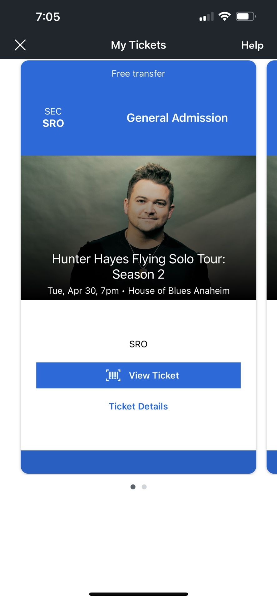 I have two tickets to Hunter Hayes at the Anaheim House of Blues for tonight. $25 each