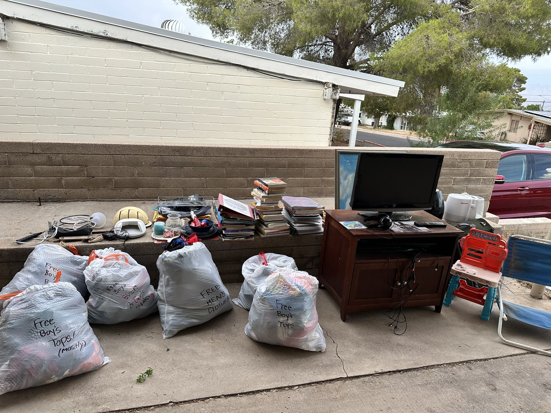 ALL FREE please pick it up, you can leave what you don’t want Queen Size Mattress Air fryer Humidifier TV with TV stand Headphones Computer Keyboards Decor Clothes 1 Vintage perfume/cologne A few Kids toys Vintage books Foldable beach chair (needs to be power washed but works good) Everything needs to be cleaned* Message me for the address Located in San Manuel, AZ