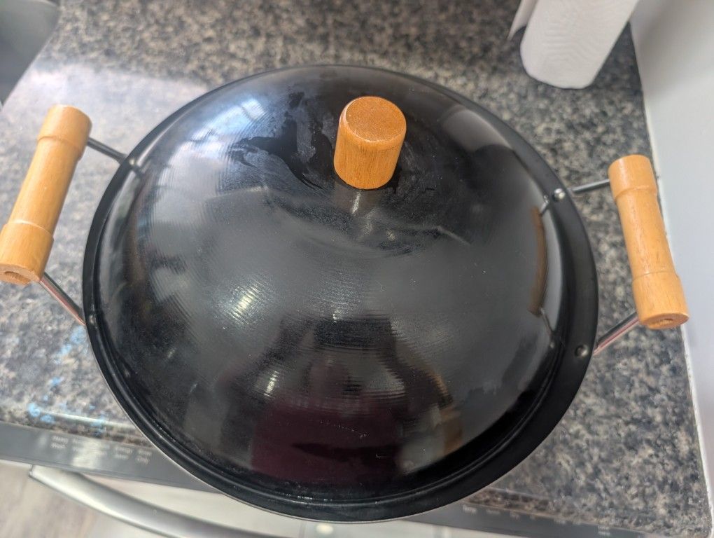 Joyce Chen Classic Series 14-inch Carbon Steel Nonstick Wok set with a lid