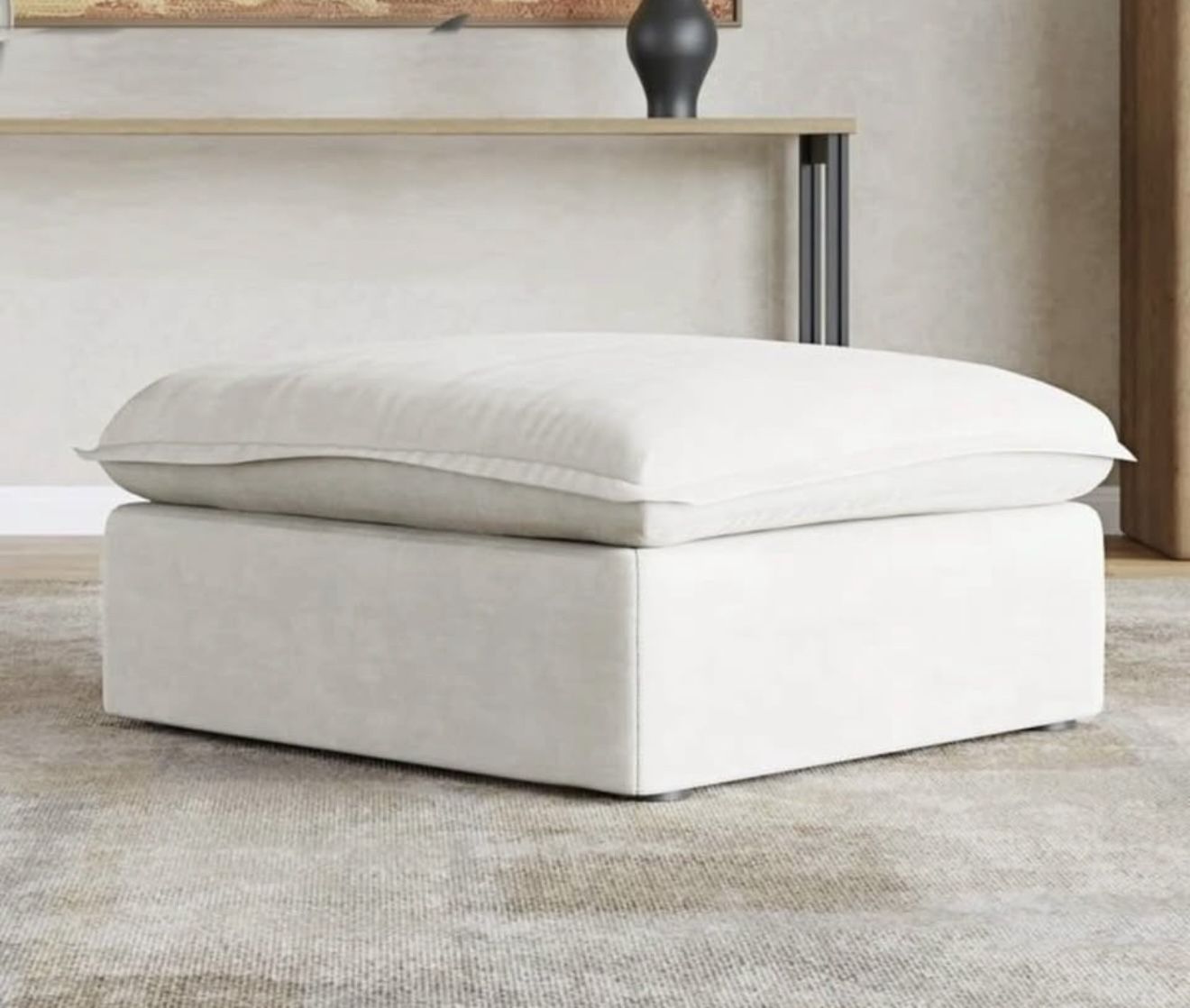 White Modern Storage Ottoman Module for Living Room, Cushion Covers Removable, Minimalist Comfy Breathable Footstool Footrest for Living Room Apartmen