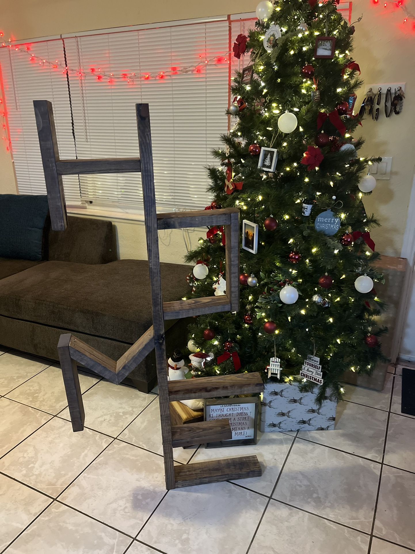 Custom floor “HOME” shelf, Blue stain. 60” tall