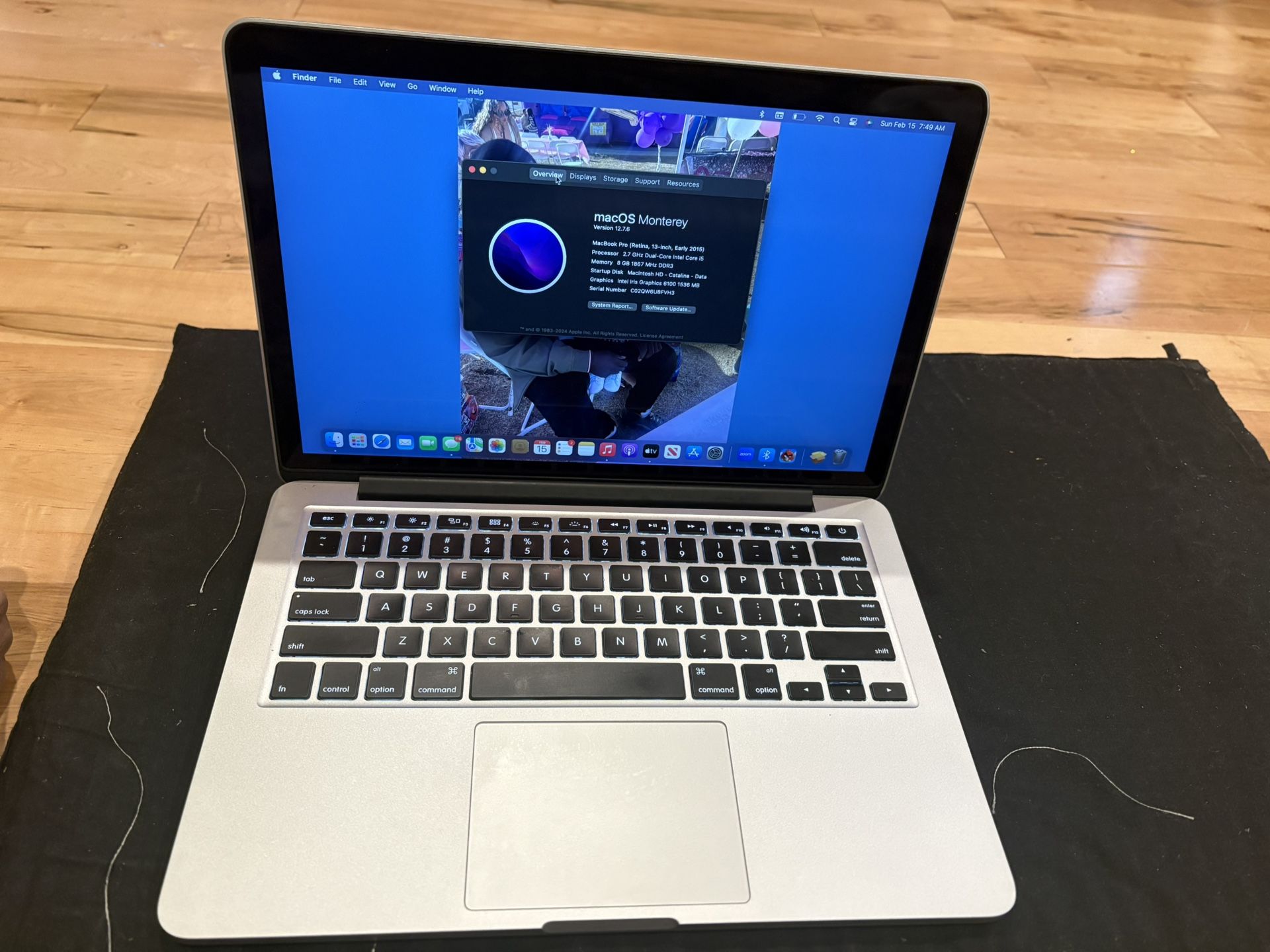 Year - 2015 MacBook Pro 8 GB RAM Intel core i5 processor 128 GB storage In excellent condition and runs great Perfect for school students Located in San Diego