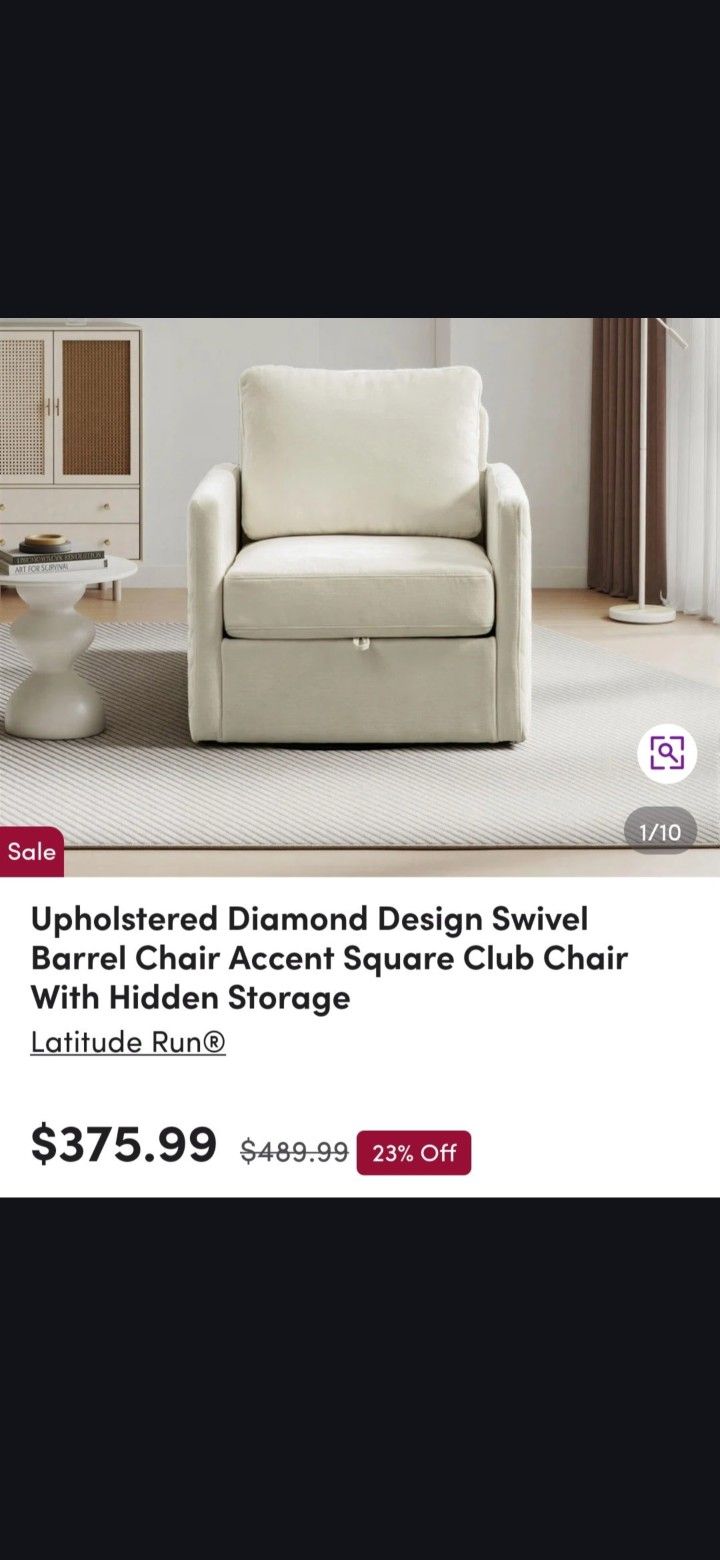 Upholstered Diamond Design Swivel Barrel Chair Accent Square Club Chair With Hidden Storage new never used retail price $370 our price $160