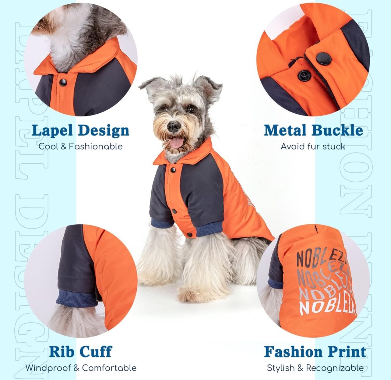 CHECK OUT MY OTHER OFFERS Size Large, Dog Jacket, Nobleza Waterproof & Windproof Fleece Lined Dog Winter Coat with Leash Hole, Fashion Personality Dog Cold Weather Coats for Cold, Wet, Windy and Snowy Day(Orange L)