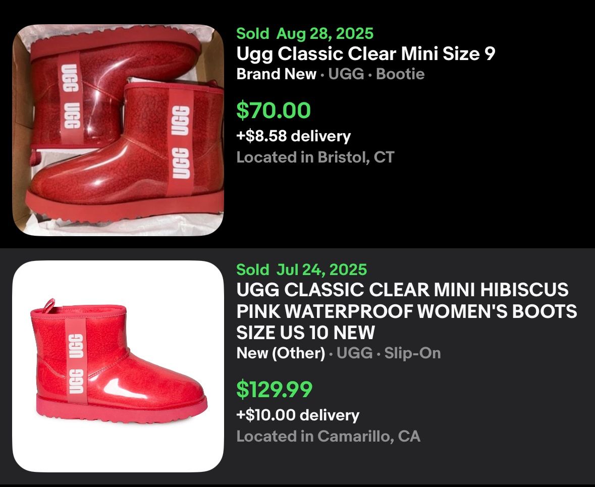 UGG CLASSIC CLEAR MINI HIBISCUS PINK WATERPROOF WOMEN'S BOOTS SIZE 7 NEW W/O BOX