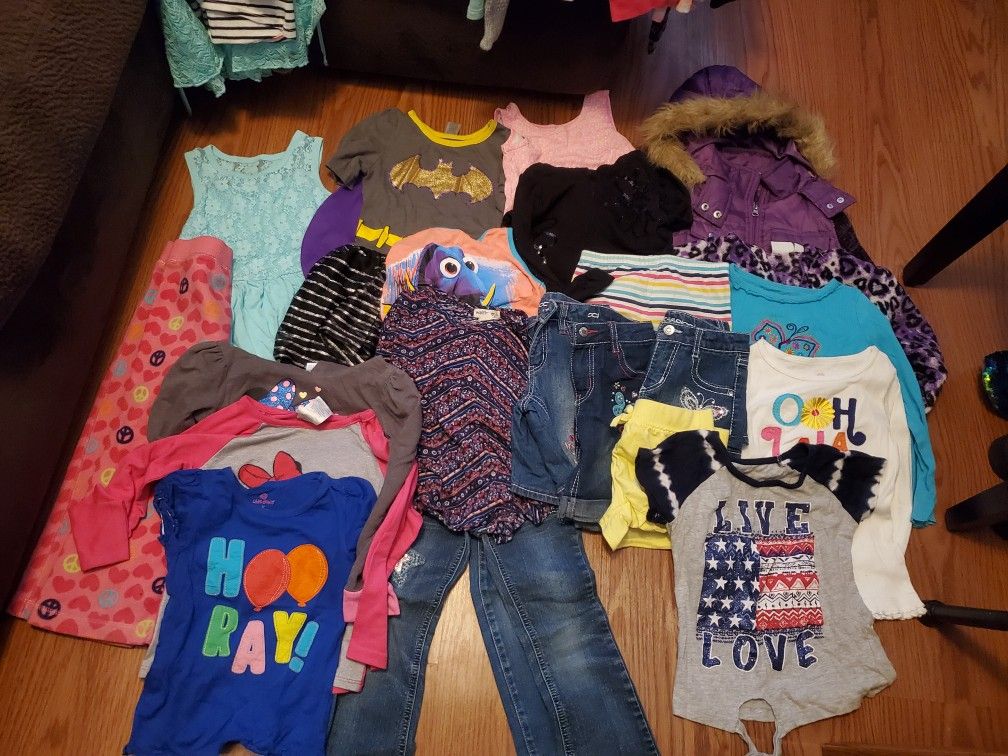 Kids clothes size 4, 4/5, and 5. Gently used. Great condition. Nice variety of shorts, dresses, pants, and tank tops.