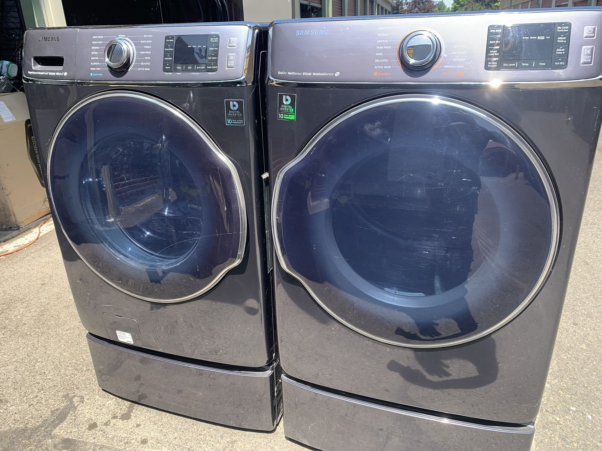 Samsung XL Capacity Washer And Electric Dryer On Pedestal