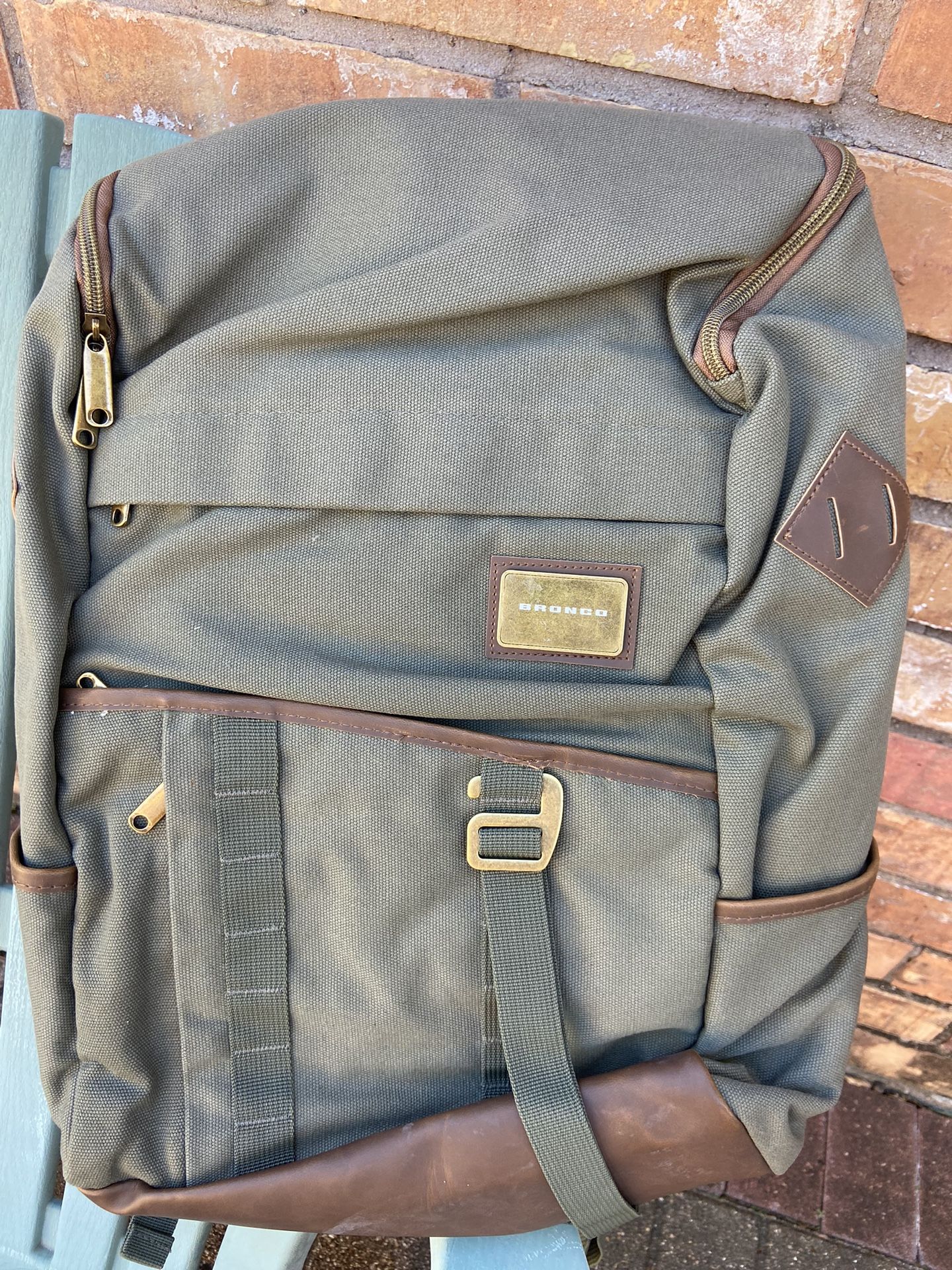 BRAND NEW - NEVER USED Great Gift for Ford Bronco Owners - Finley Mill Cotton Canvas Backpack - Ford Bronco Brand *BONUS* Set of 2 Stainless Steel Coffee Cups with working Carabiners - NEVER USED
