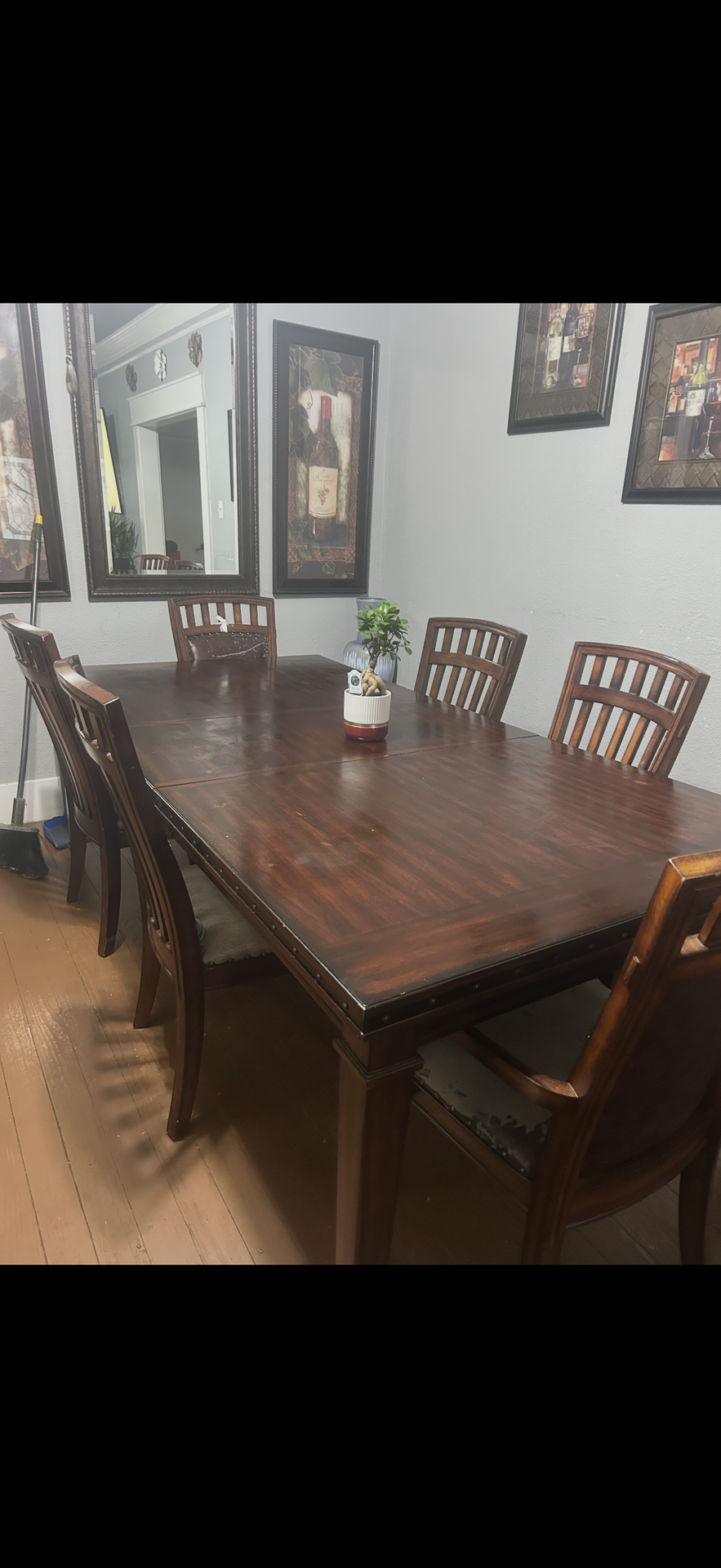 $800 table and cabinet in great condition. Chairs do need to be reupholstered though