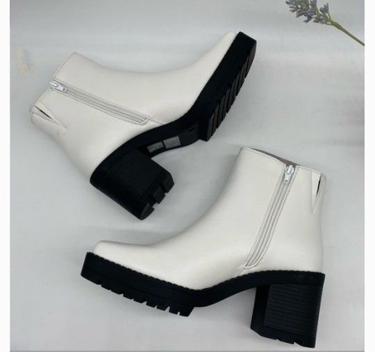 NEW YORK AND COMPANY Women's Alex Square Toe Booties faux leather White size 7.5
