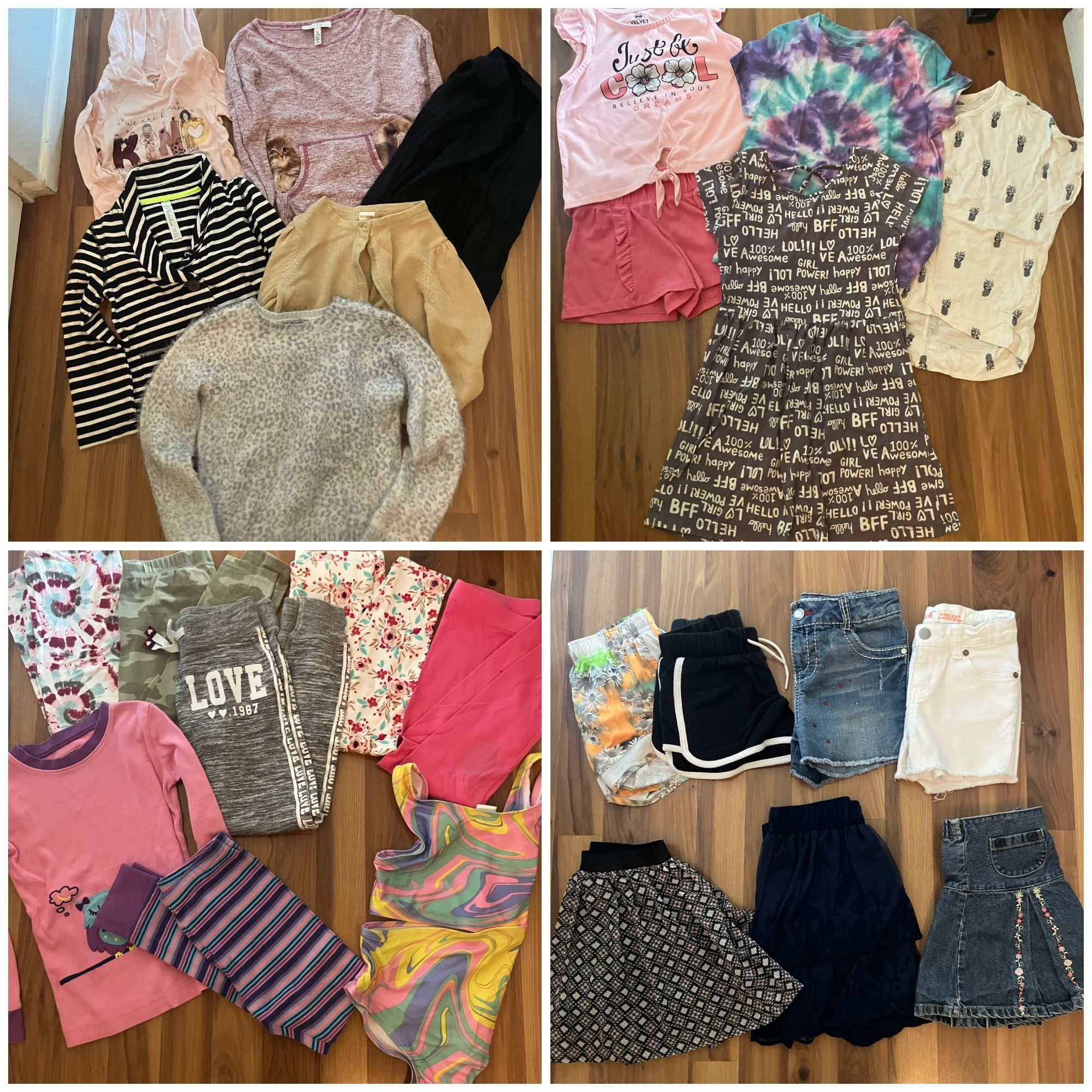 Plenty of wear still left in them Brands: Carters Jessica Simpson Cherokee Old Navy Gymboree Cat & Jack Sonoma Isaac Mizrari 5 pairs of pants 1 swimsuit 1 pairs of Pajamas 1 dress 5 sweaters 4 shirts 3 skirts 5 shorts 25. items total No rips or stains Smoke-free home Pick up 32nd St and Union Hills
