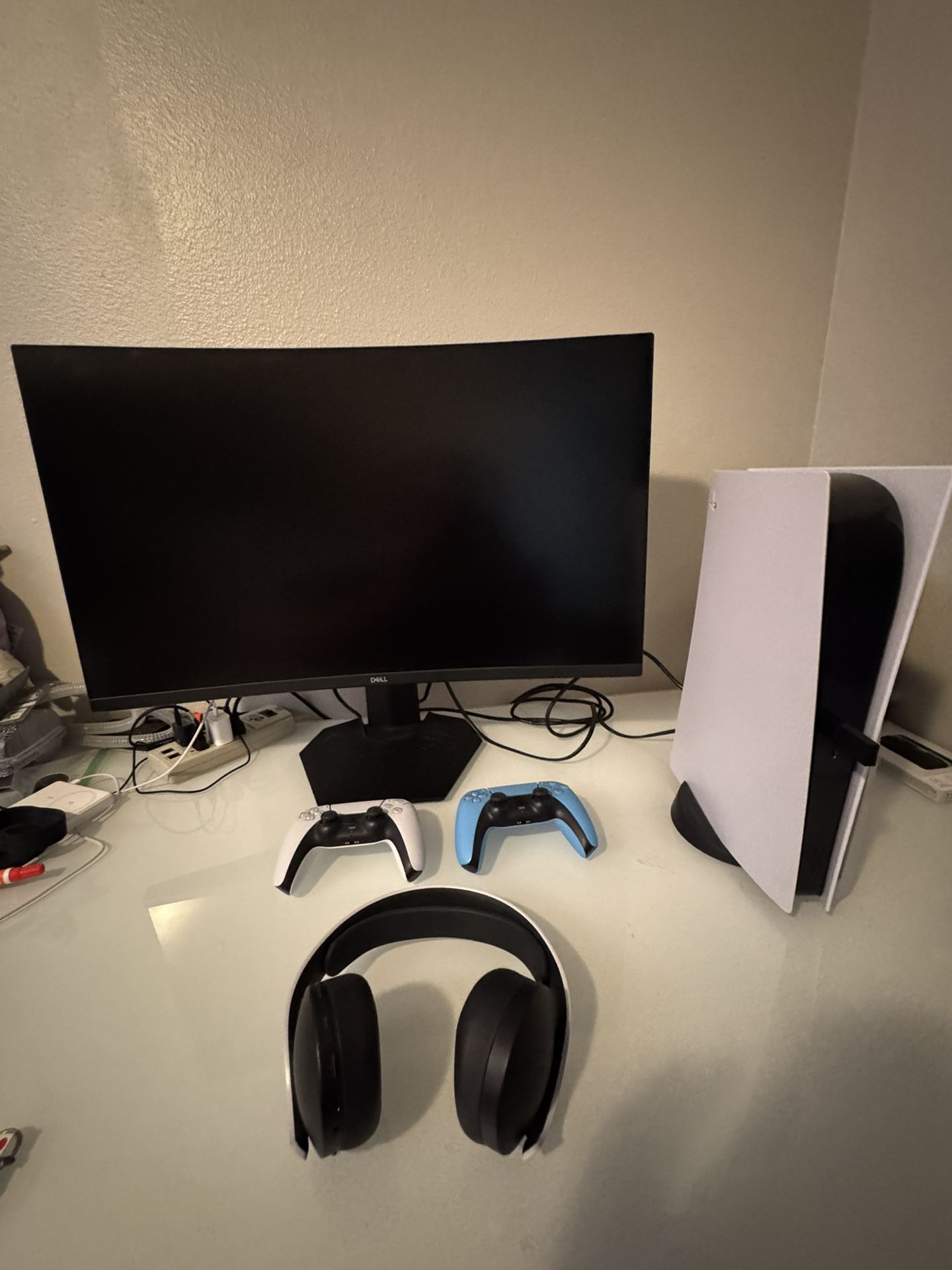 PS5 disk drive 2 controllers Pulse elite headphones 32 inch monitor Everything works great! Just looking to upgrade to a pc.