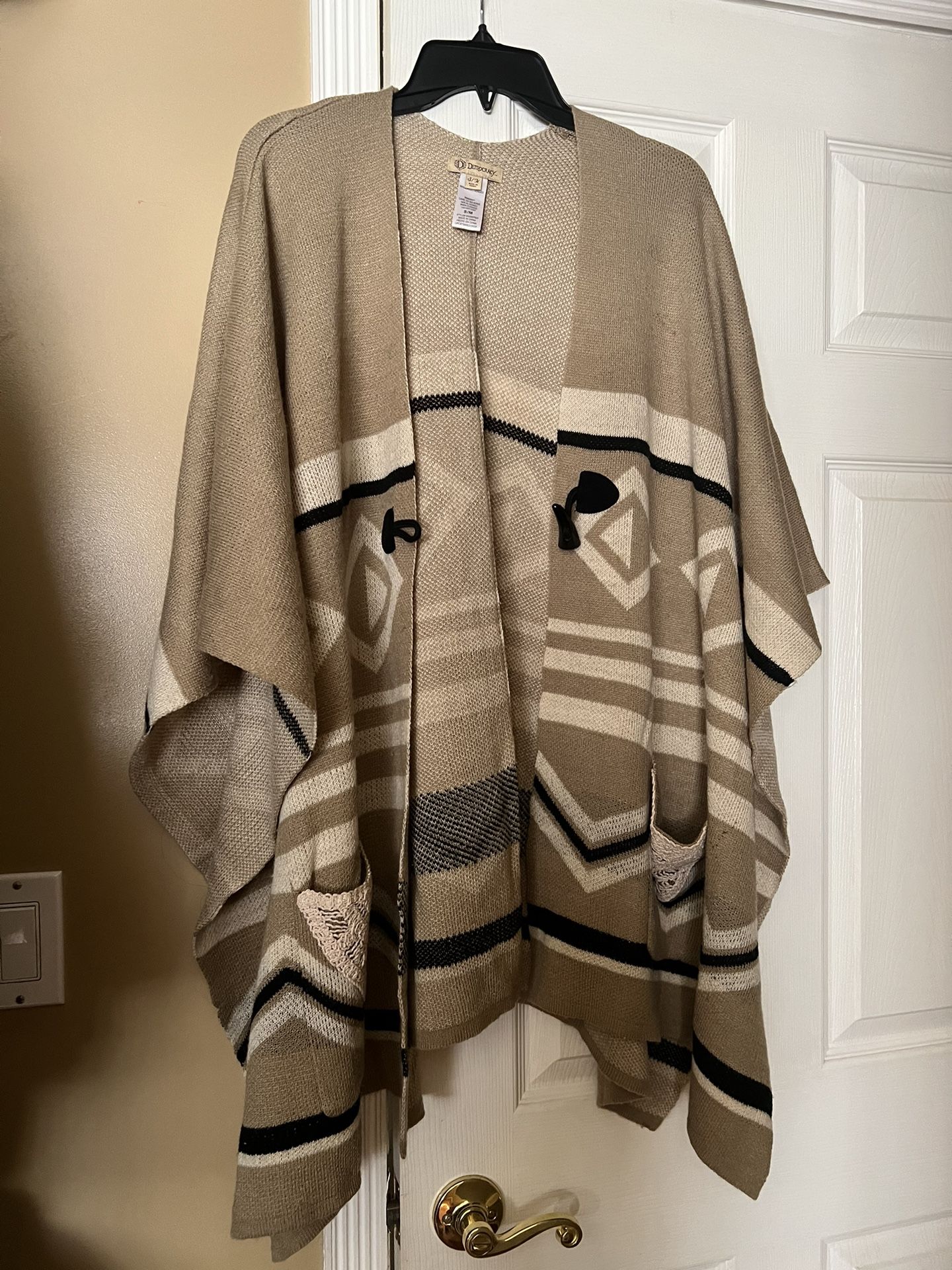 Artisan Crafted Democracy Poncho Brown Pockets Southwestern