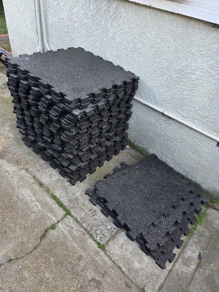 Hello I have a handful of rubber mats for sell These are not foam, they arr rubber Interlocking so you can make whatever dhaoe you need 30 pieces that are 24"x24" And a few smaller pieces Theyre a little over 1/2" thick I have more stuff on my page Boxing, Weight, weights, exercise, workout, curl bar, barbell, Olympic weights, squat, squat rack, rogue, bowflex, bench press, dumbbell, dumbbells