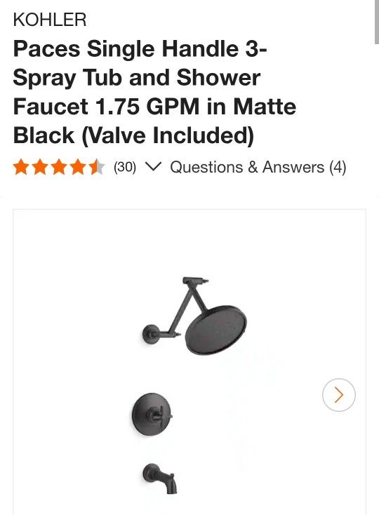 KOHLER Paces Single Handle 3-Spray Tub and Shower Faucet 1.75 GPM in Matte Black (Valve Included)”
