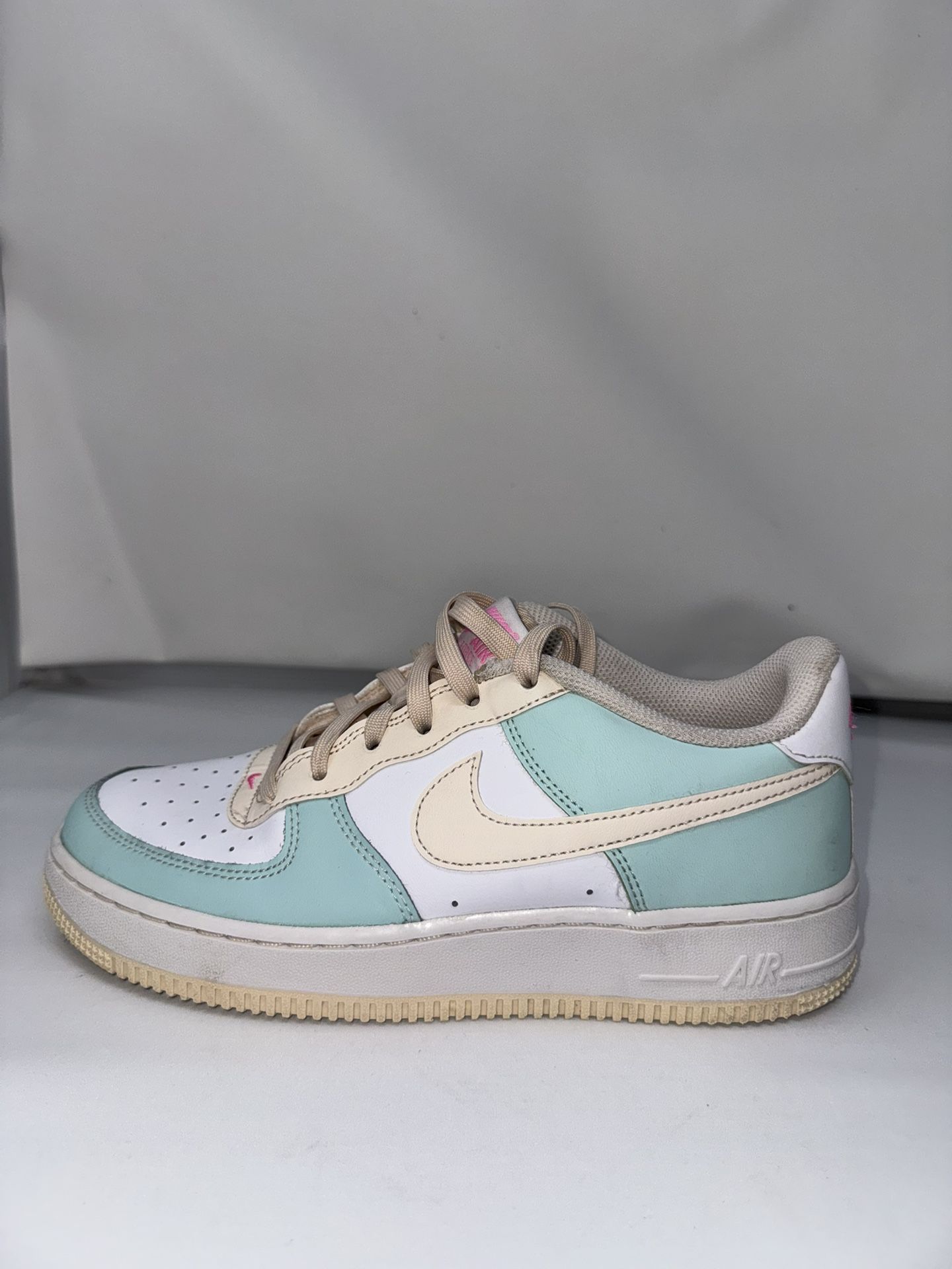Nike Air Force 1 Low Pastel Mint Green/Beige w/ Pink Heart - Size :6.5 Y Us