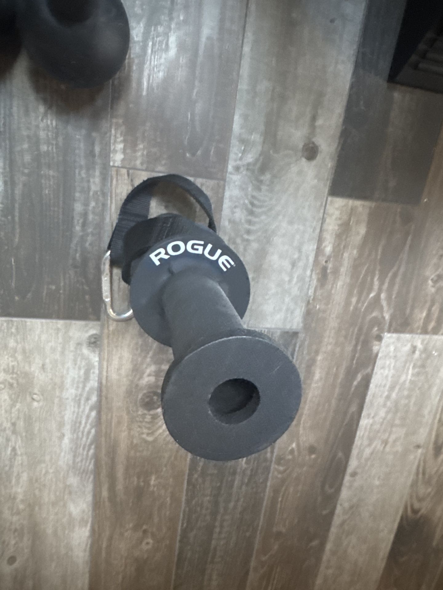 $50.00 Authentic Rogue Fitness loading pin, commonly used for forearm, wrist, and grip training. Perfect for: • Wrist roller / forearm burnouts • Grip strength training • Plate-loaded cable work • Garage gym or CrossFit setup Heavy-duty steel construction with nylon strap and carabiner included. Holds standard Olympic plates. Clean, solid condition. Rogue Fitness, forearm trainer, grip strength, wrist roller, loading pin, CrossFit, garage gym, strength training, Olympic plates, cable attachment