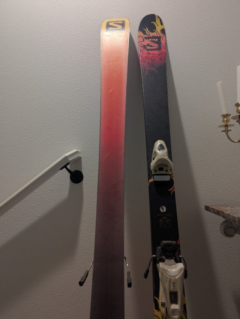 These are about 5 years old, but have only gotten two seasons of use out of them. There are a couple of scuffs and the bindings are a little heavy, but they're awesome flexible skis. I've got boots that I could add in for an additional cost, they're about as used as the skis.