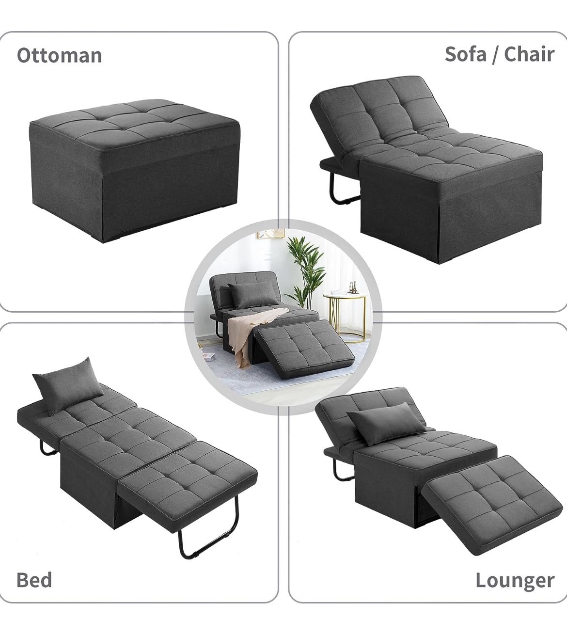 Sofa Bed, 4 in 1 Multi-Function Folding Ottoman Breathable Linen Couch Bed with Adjustable Backrest Modern Convertible Chair for Living Room Apartment