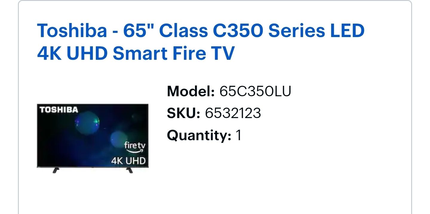 65" LED 4k smart fire tv. Perfect condition nothing with it. Only 10 months old.
