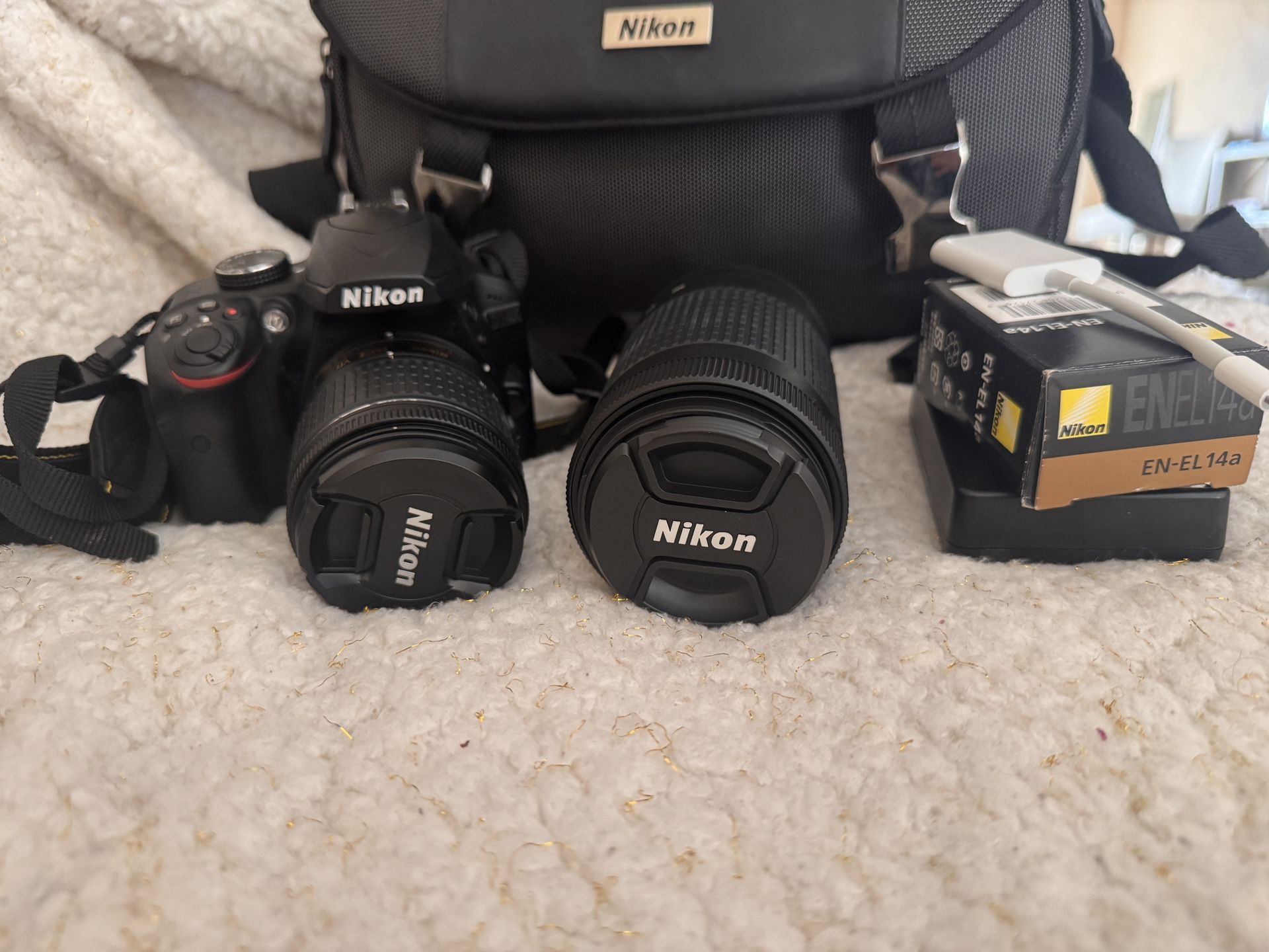 I got this as a gift a few years ago and I’ve never used it because my iPhone takes such great photos but this would be great for somebody. Who’s into photography just starting Nikon D 3400. It’s a digital camera and also camcorder and has a Nikon DX lens as well. Comes with bag 2 lens camera battery, and iPhone adapter.