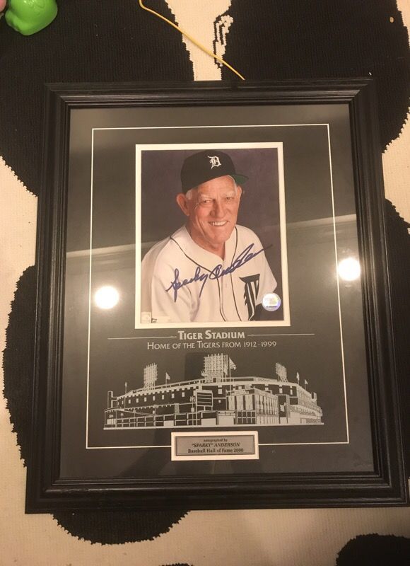 Sparky Anderson autographed framed tiger stadium photo